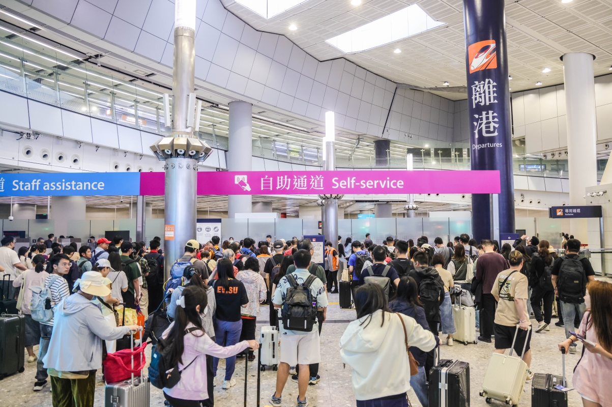 香港西九龍高鐵站大批市民陸續出行 【編輯:洪少葵】