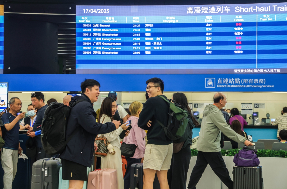 香港新聞網4月17日電(記者 曹文毓)4月17日,香港西九龍高鐵站,大批港人出行。復活節4天假期將於18日展開,運輸署預計期間會有大量市民及車輛經各陸路管制站往來內地及澳門,尤其是首天及最後一天,呼籲市民及早規劃行程,預留充裕交通時間。香港入境處日前提醒市民,預計復活節假期即4月17日至21日,約有640萬人次包括香港居民及訪客,經各海、陸、空管制站進出香港。陸路出境較為繁忙的日子是4月18日,出境人次約75萬9千人次。而入境估計假期期間羅湖管制站、落馬洲支線管制站及深圳灣將會最繁忙,預料每天平均分別約有22萬5千、20萬2千及16萬4千人次出入境。