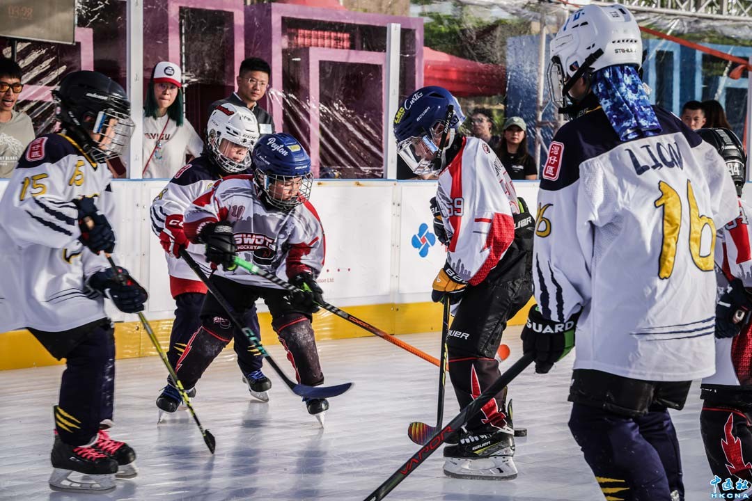 4月15日,“全民國家安全教育日2025暨港島冰球國安盃”在香港炮台山東岸公園舉辦,內容包括冰上曲棍球比賽、警察裝備展覽、攤位遊戲、國家安全教育日講座等。(香港中通社記者 曹文毓攝)