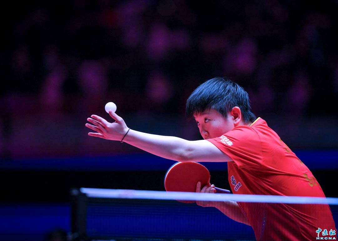 4月20日,在“2025年澳門國際乒聯男子及女子世界盃 ─ 由銀河娛樂集團呈獻”中孫穎莎奪得女單冠軍。 香港中通社圖片