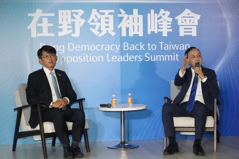 在野領袖峰會。聯合新聞網圖片 朱立倫在會上抨擊,正當全世界應對貿易戰、匯率戰和美債危機時,台灣執政黨卻在搞大罷免、進行政治鬥爭清算在野黨。朱立倫遂提出針對民生問題的4大合作方案,包括提高應對關稅的特別預算,應對股市危機、開放觀光帶動內需以及分散貿易市場。 民眾黨主席黃國昌致辭時則再度提及前主席柯文哲遭遇。表示過去一段時間台灣政局動蕩、民眾生活痛苦、司法正義淪喪,在野黨不能坐視不管。黃國昌建議,兩黨之間合作搭建平台,邀請學者、地方民代和產業代表參與,提出民間版的美關稅衝擊報告。 朱立倫和黃國昌當天互動頻頻,不僅應媒體要求三次握手,甚至上演“擁抱秀”,展現團結姿態。黃國昌允諾,將代表民眾黨出席國民黨在4月26日組織的凱道遊行,但強調是為了訴求當局對柯文哲的司法迫害。