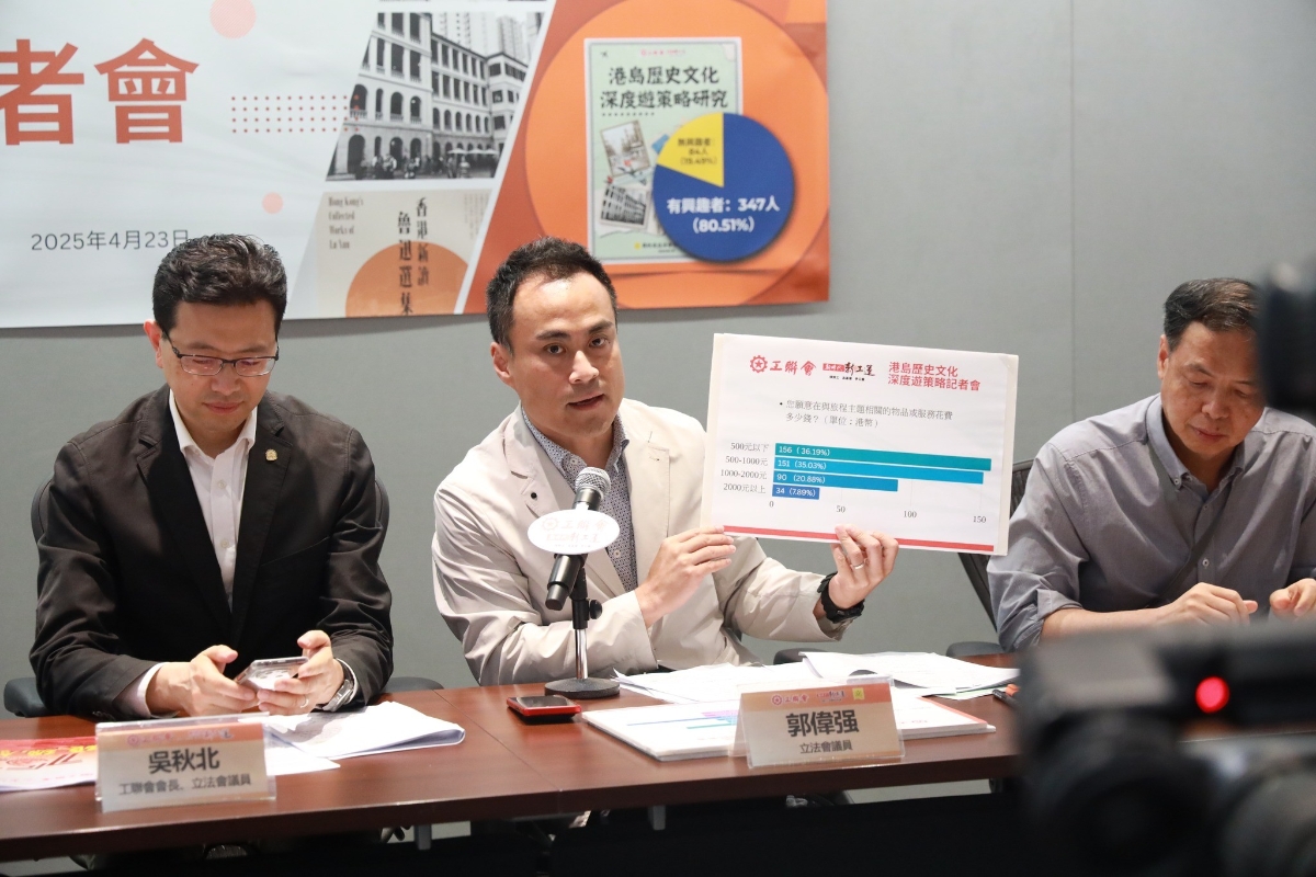 (圖源:吳秋北FB) 調查從民政事務署“香港自遊樂在18區”網頁抽選一些港島的歷史文化景點,包括中西區文物徑、香港抗戰海防博物館、大坑蓮花宮等。調查顯示,中西區文物徑最為內地深度遊旅客熟知、有34.11%受訪者選擇。在歷史文化特色遊主題方面,內地客最感興趣的首三位分別是舊區本土文化(61.48%)、古蹟遊(58.93%),以及香港發展歷史(53.36%),文化遊亦位列第四。 在有興趣參加的歷史文化特色遊路線方面,65.43%受訪者選擇沿海古蹟之旅,路線途徑譚公廟、天后廟、香港抗戰及海防博物館、筲箕灣東大街等地;緊隨其後的是漫步文人足跡,獲64.97%受訪者選擇,有關路線經過北角繼園街、林泉居舊址、香港大學、淺水灣等地。 工聯會建議康文署結合熱門小說,規劃文學旅遊主題路線,並推出一站式應用程式,讓遊客了解交通資訊等。 至於旅遊產品消費偏好方面,以地道美食居首,73.32%受訪者願意為其“買單”;其次是“冰箱貼、明信片、杯子等紀念品或手工藝品”,佔49.65%;第3和第4分別為“導賞團”和“訂製化旅程”,二者相加佔比超過60%。 在消費額度上,最多內地客選擇“500港元以下”,佔比36.19%,但也有7.89%的受訪者選擇“2000港元以上”。 工聯會立法會議員郭偉強表示,來港的內地客主要透過社交媒體了解旅遊資訊,政府應更好利用媒體及KOL,合作推廣更多香港深度遊的資訊。又指以往經常推薦旅客來港看霓虹燈,但因應安全問題,屋宇署或要求部分商戶拆除霓虹燈,郭偉強認為這與香港推廣霓虹燈歷史相違背,建議特區政府考慮是否推動活化及保育,令香港一直以來存在的建築文化可作相應保留。(完) 【編輯:劉春】