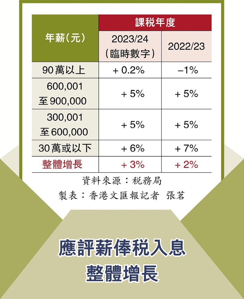 香港納稅人口連增兩年,整體稅收增10%香港新聞網5月3日電 作為經濟晴雨表的香港特區政府稅收報捷!香港特區政府稅務局昨日(2日)宣布,已發出266萬份2024/25課稅年度個別人士報稅表,其中約79萬份為電子報稅表。受惠於各類輸入人才計劃,納稅人口連續第二年增加,今次發出的報稅表數量比去年多22萬份,並帶動2024/25年度各類收入,薪俸稅、印花稅、利得稅全線齊升,整體稅收按年度增一成達3,745億元。 香港稅務局局長陳施維解釋,輸入人才計劃為香港帶來更多納稅人,他們的整體入息水平提高,並跌入稅網。展望2025/26年度預計稅收4,014億元,按年度增加7%,其中入息及利得稅3,012億元、印花稅676億元、其他稅收327億元。