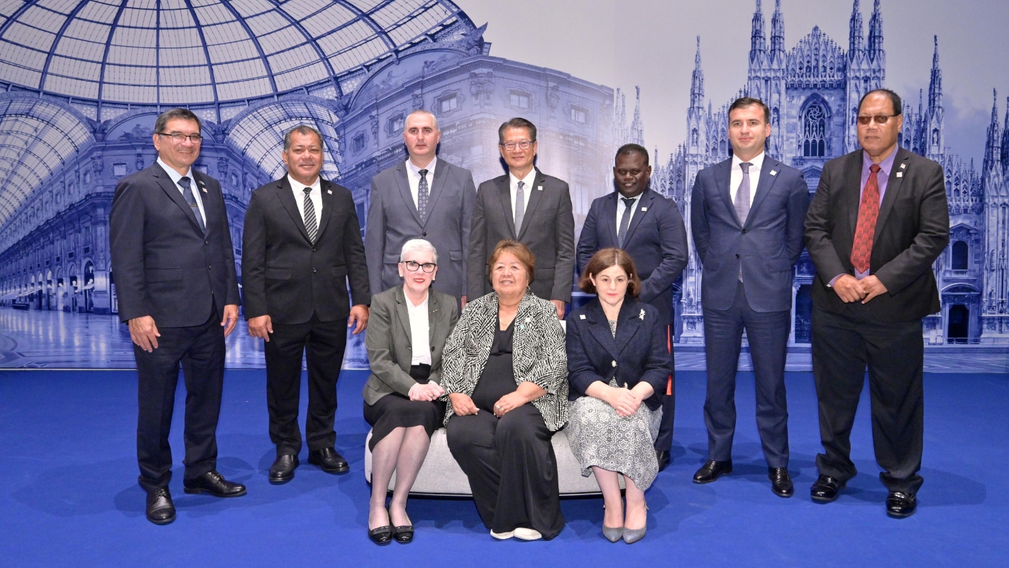 財政司司長陳茂波昨日(米蘭時間五月四日)在意大利米蘭出席亞洲開發銀行(亞開行)第五十八屆年會。圖示陳茂波(後排中)與其他出席亞開行年會組別會議的代表合照。 陳茂波表示,中國香港歡迎亞開行加強支持發展中國家應對氣候變化、發展私營市場、推進區域合作、數字轉型等工作。同時,中國香港也支持提升對發展中國家的技術支援,以增強發展項目的成效。
