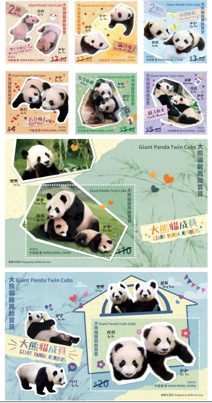 《二十四節氣—秋》主題郵票將於2025年8月7日發行 中央政府於2007年贈送香港特別行政區(香港特區)的一對大熊貓“盈盈”和“樂樂”,於2024年8月15日誕下一對龍鳳胎寶寶“加加”和“得得”。廣大市民非常喜愛這對大熊貓龍鳳胎,並時刻關注牠們的成長。香港郵政將以“大熊貓龍鳳胎寶寶”為題發行特別郵票,展示“加加”和“得得”在不同階段的生活點滴,見證牠們的成長旅程。