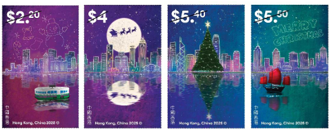 《香港航空業發展》主題郵票2025年10月21日發行 作為中西匯聚的城市,香港每逢聖誕節都充滿濃厚的節日氣氛。香港郵政將以“聖誕郵票V”為題發行特別郵票,郵票以維港夜景為背景,在星空下呈現各式各樣的聖誕元素和節日的歡樂,展示這個充滿喜悅、溫馨和祝福的節日。