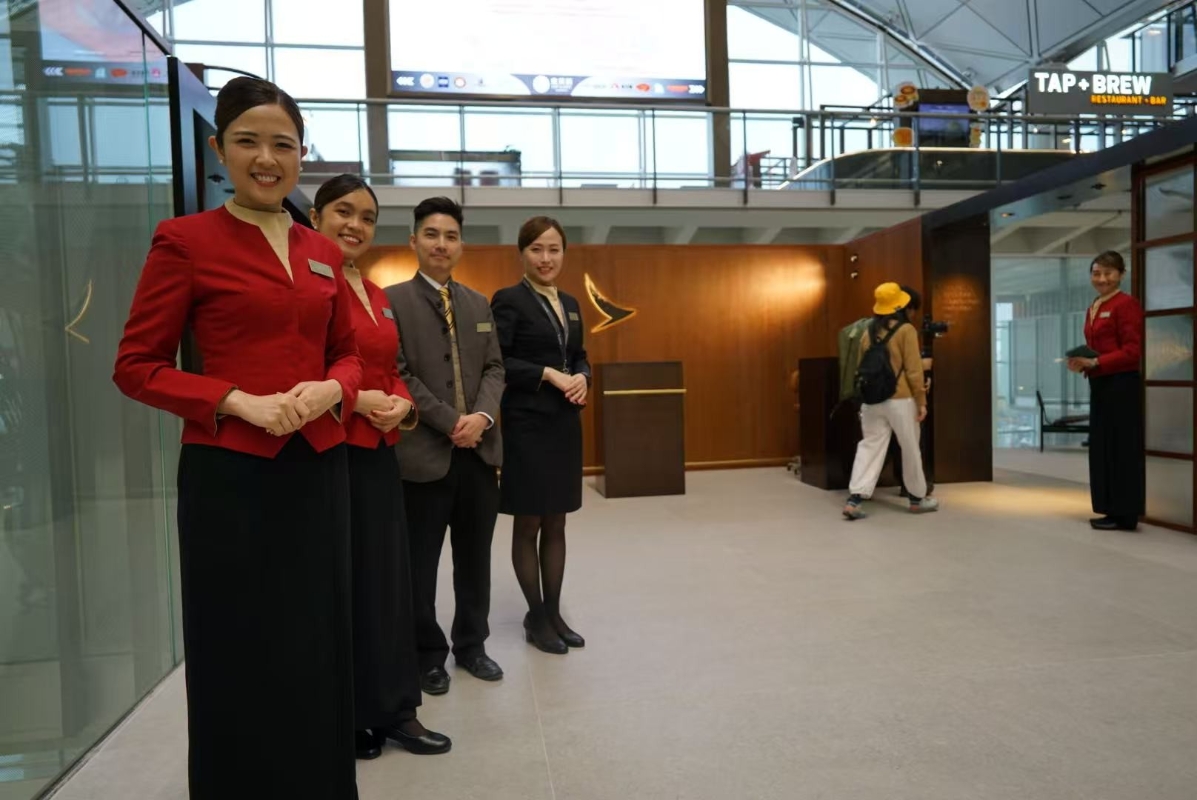 香港中通社圖片 右方區域設有頭等艙顧客及國泰鑽石卡會員的尊享區域,由國泰航空機場團隊悉心服務,顧客可怡然自得,盡享舒適和私密的休憩時光。