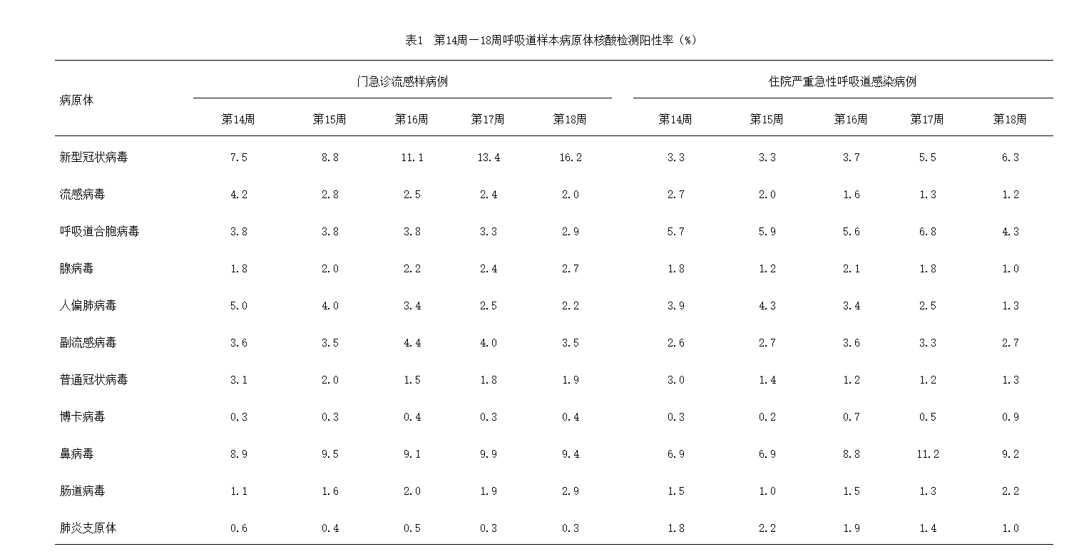 第18周呼吸道樣本主要病原體核酸檢測陽性率區域差異 圖源:中國疾控中心 從地域分布來看,中國南方省份的新冠陽性率相對北方省份略高,這或許與南方的氣候、人口密度以及人員流動特點等因素有關。(完) 【編輯:彭玉婷】
