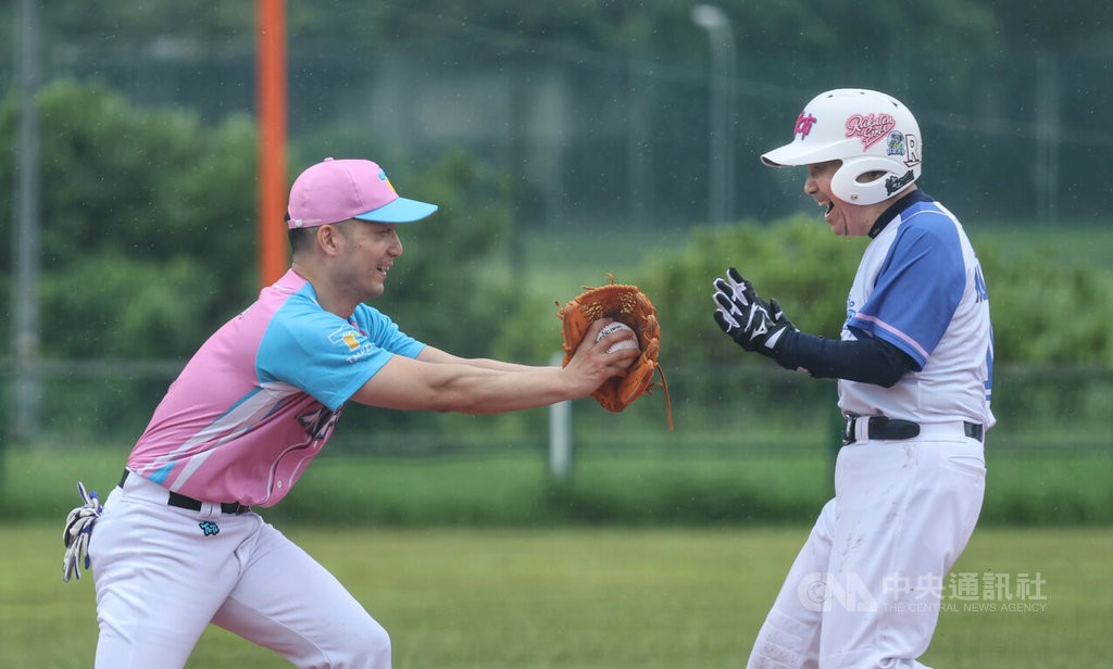 香港中通社5月24日電 2025年世界壯年運動會在台北、新北兩市舉辦,24日慢投壘球項目上演雙北市長大戰,台北市長蔣萬安、新北市長侯友宜各自率市政府官員隊伍參加,最後台北隊以9比3贏下比賽。 當天賽場上下起細雨,比賽由新北隊先攻,侯友宜擔任首棒打者並順利上壘,但最終未能得分。攻守交替後,蔣萬安在隊員助攻下拿到第1分。比賽進行約50分鐘,台北隊以9比3拿下勝利。