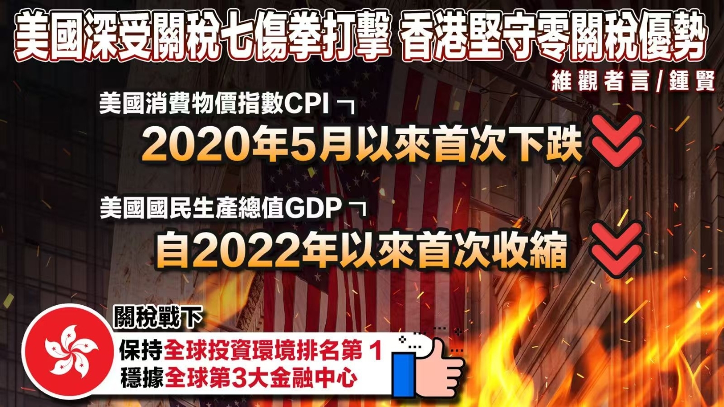 香港本地媒體評論文章以香港和美國的最新經濟數據對比,認為特朗普開打關稅戰,對美國的打擊陸續浮現。另一方面,縱使香港早前面臨美國相等於全面禁運的無理高額關稅,仍堅守零關稅堡壘,表面上好像對出口商不公,但長遠來看,香港獨特地位和靈活財金政策,促使香港於國際貿易中保持競爭力,並繼續發揮作為中國內地與全球其他市場的橋樑作用。 文章認為,香港向來不徵收關稅,令香港成為全球最自由經濟體。美國對香港徵收的高額關稅,理論上增加香港出口商的成本,削弱其產品在美國市場的競爭力。然而,香港維持對美零關稅政策並非被動應對,而是基於其自由港地位的戰略選擇。 儘管美國的關稅政策對部分出口商造成衝擊,但香港的經濟結構已逐漸轉向高附加值服務業,例如金融、物流和專業服務,這些行業受關稅影響較小。此外,政府近年積極拓展東盟新興市場,特首李家超多次率團到訪中東、東盟及一帶一路國家,成功為香港打開新興市場。(完) 【編輯:陳卓儀】