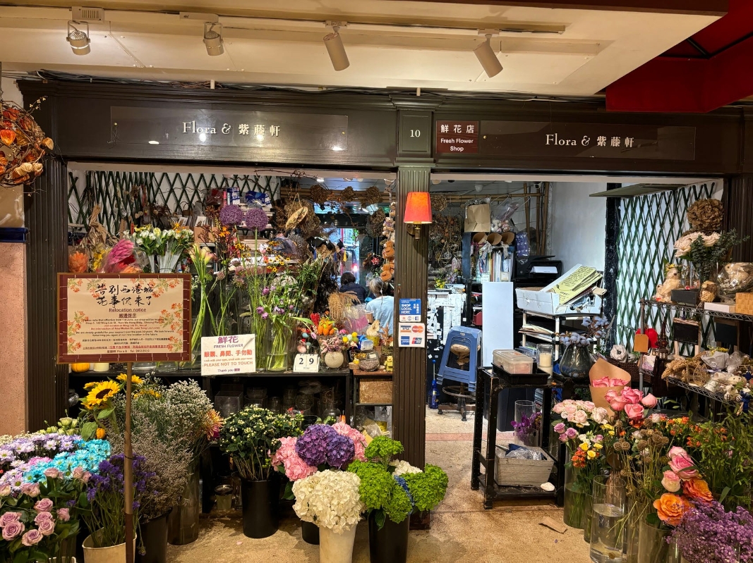 花藝店“Flora & 紫藤軒”在西港城落戶逾30年。(香港中通社記者 黃璇攝) 一樓“花布街”則瀰漫著更深的不安。15戶布商中已有3家結業,其餘面臨10月底前撤離的最後通牒。他們原是1991年因永安街重建而遷入的布商,如今恐成香港布藝產業的絕響。展櫃內陳列著香雲紗、廣彩等織品,牆角“全場五折”標語格外顯眼。經營窗簾布藝的店主坦言,暫時未有下一步打算,“外面租金太高,很難找到合適店舖經營,走一步算一步,可能清貨後就結業。”有市民特地到場打卡,街坊梁先生撫摸著英式電話亭感慨:“擔心裝修完變了樣,這些電話亭外面已經找不到。”