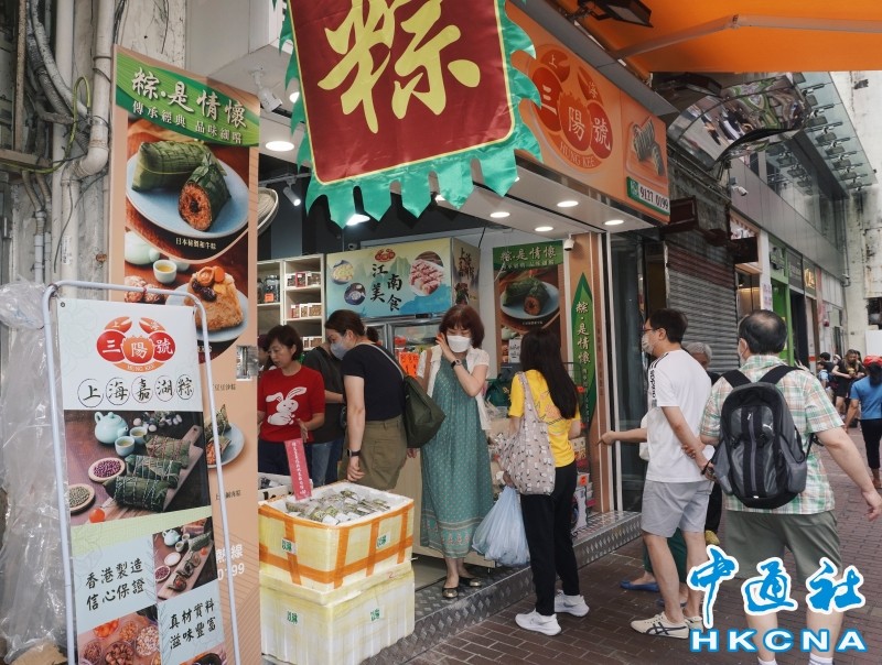 香港中通社5月31日電(香港中通社記者 陳卓儀徐嘉儀)端午吃粽子,中國人的傳統節日總是與吃分不開,以食物作為家里過節的團聚元素,也更有節的味道和記憶。四方人才匯聚的香港,粽子早已經不是單一的廣東味上海味,在甜鹹粽子的爭論中,這里能一次品嚐中華大地的各式粽子。 從歷史文獻考據,粽子最早被稱為“角黍”,用作祭祀。而南方的“筒粽”則與古老的百越族密不可分。 與湯圓、豆腐花等“南甜北鹹”口味不同,中國粽子以“南鹹北甜”為主。南方粽一般呈金字塔狀或枕頭狀,餡料以鹹食為主,常見鹹蛋黃、豬肉、冬菇、芋頭、臘腸。北方粽則呈圓錐形,餡料以甜食為主。不過在粵閩地區,甜口味的鹼水粽也在一些地區流行。 在香港,這些門派全都有,沒有南北之爭,全看個人口味。 位於銅鑼灣的洪記三陽號主力賣上海美食,前身是逾40年歷史的老字號“老三陽”,今年售賣的粽子種類高達22種,傳統上海鹹肉粽、嘉湖鮮肉粽、肇慶裹蒸粽,還有廣式粽、甜粽······一張表格供客勾選,匯聚各地特色,均是香港本地製造。 店鋪內粽葉香氣瀰漫,大大小小的粽子,用不同顏色的線繩作標記,叫人眼花繚亂。