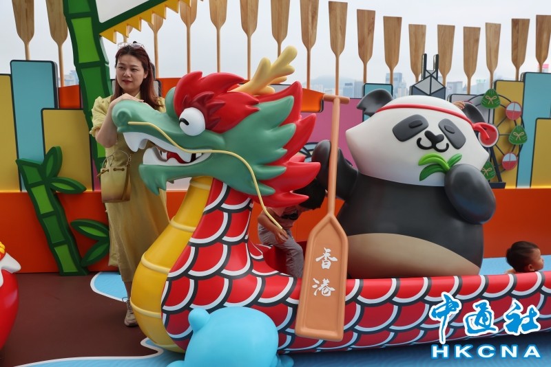 香港中通社圖片 嘉年華亦設有不少“打卡”佈置,包括“大熊貓龍舟”雕塑便吸引眾多旅客合影留念,也有小朋友坐上“龍舟”,拿起船槳模擬在水中“划船”。 龍舟競渡無疑是香港端午假期的重頭戲,與內地以村為單位的傳統不同,香港龍舟隊多由高校或機構組成,展現現代都市的團結精神。 5月31日,在赤柱,有“香港小希臘”之稱的海灘化身國際賽場,200支龍舟隊伍、約5000名來自全球的選手齊聚赤柱,鑼鼓喧天,熱鬧非凡。 “沒有想到香港連端午節氣氛都這麼好,海邊全是人。”有來自東莞的遊客提到,“熊貓扒龍舟”的佈置可愛、有心思,海邊對應龍舟,形容是非常好的構思。 不少內地客均表示,香港端午節氛圍濃厚、活動眾多,將中華傳統文化演繹得淋漓盡致,成為旅客感受節日魅力的絕佳之地。 因應旅客的到訪,有在星光大道擺攤的小食店店主指出,端午節生意額較平日上升約5倍。 根據攜程旅行資料,香港成為內地客端午假期出境遊熱門目的地第二位,僅次於日本。(完) 【編輯:劉春】