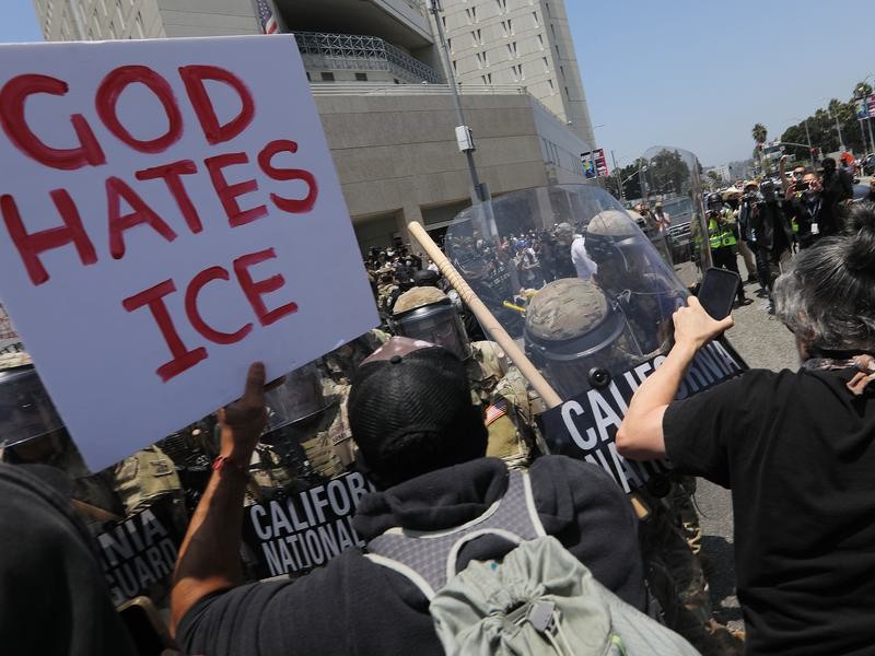 6月8日,國民警衛隊人員在美國加利福尼亞州洛杉磯市中心的聯邦執法機構門前警戒。新華社發 【特朗普警告抗議者:你們吐口水 我們就動手】 據美媒報道,6月8日中午,美國加利福尼亞州洛杉磯市中心聯邦執法機構門前的抗議者與部署在該地的國民警衛隊人員發生衝突。特朗普指控抗議者向警察“吐口水”,并提出一句,“他們吐口水,我們就動手”。特朗普稱,“我告訴他們,誰也不許朝我們的警察吐口水,誰也不許朝我們的軍人吐口水。” 【美國議員向國民警衛隊喊話:不要開槍 不要被特朗普利用!】 當地時間6月8日,美國國民警衛隊人員開始陸續進駐洛杉磯。從當地媒體的畫面中可以看到,從上午開始,已有抗議者與國民警衛隊人員對峙。 對峙現場,來自加州的美國聯邦眾議員瑪克辛·沃特斯控訴美國政府的行動是“荒唐的企圖”,“我希望你們都不要用那些槍向任何人開槍,別被利用。”