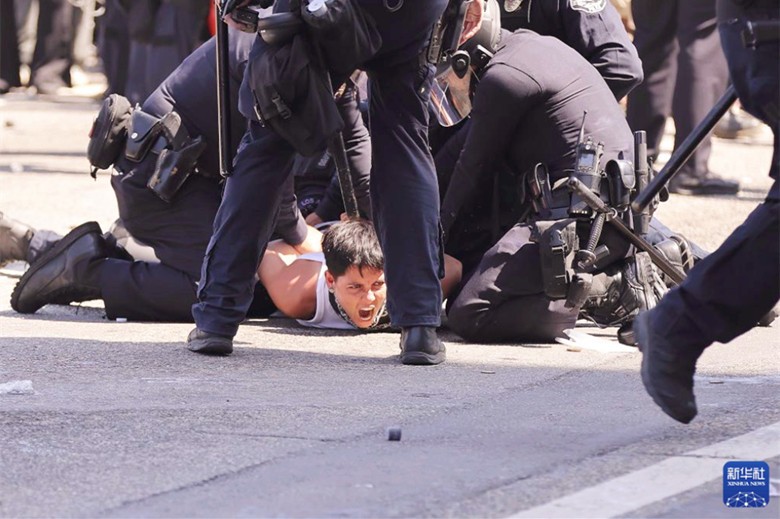 2025年6月8日,在美國加利福尼亞州洛杉磯市中心的聯邦執法機構門前,一名抗議者被警察控制。新華社發(邱晨攝) “尚未到內戰程度” “我們是否正在目睹(美國)聯邦權力被用於選舉目的,導致總統和州長之間產生矛盾?或者這僅僅是美國長期以來為定義公共秩序的含義和國家的作用而進行鬥爭的延伸?”對於此次洛杉磯騷亂,卡塔爾半島電視台提出這一問題。 美國《新共和》周刊認為,此次洛杉磯騷亂說明,一些共和黨人關於聯邦和州政府之間權力適當分配的原則偏離了傳統的共和黨意識形態。 在1969年美國時任總統尼克松宣布“新聯邦主義”後的半個世紀里,大部分共和黨人一直在聽從尼克松的告誡,即“資金和責任應該從華盛頓流向各州和人民”。美國《大西洋》月刊日前發文稱,白宮希望利用洛杉磯騷亂來擴大聯邦政府控制各州的權力。 在加州騷亂持續的背景下,“內戰”不斷被一些政治人士以及媒體提及。同樣的事情也發生在去年的得州邊境危機中,當時《新聞周刊》等美媒稱,該危機導致美國“內戰”風險加劇。此次洛杉磯騷亂是否會導致美國爆發內戰?對此,中國國際問題研究院美國所副所長張騰軍認為,雖然目前來看兩黨對立尖銳,但尚未到內戰程度,僅有街頭衝突與尖銳對峙,沒有發展到大規模軍事對抗,但後續發展仍值得觀察。 對於美國聯邦和地方政府矛盾增加的問題,張騰軍表示,這將給美國帶來不少挑戰:一是加劇社會與政治危機,使當前危機複雜難解且嵌套出現,因制度設計缺陷難以解脫與自我改革;二是危機向經濟、社會、文化、外交等其他領域延伸,引發更廣泛危機。 另據半島電視台報道,美國喬治敦大學專門研究軍民關係的法學教授羅莎·布魯克斯指出,白宮將國民警衛隊部署到洛杉磯令人深感不安,并可能引發危險的轉變,加劇緊張局勢,削弱軍隊與民間社會之間的聯繫,而這可能會對未來的軍事力量產生負面影響。(綜合 新華社 央視新聞 環球時報 聯合早報 ) 【編輯:豐悅】