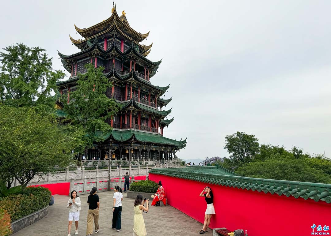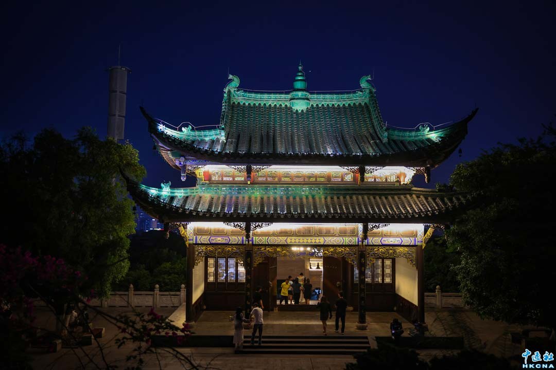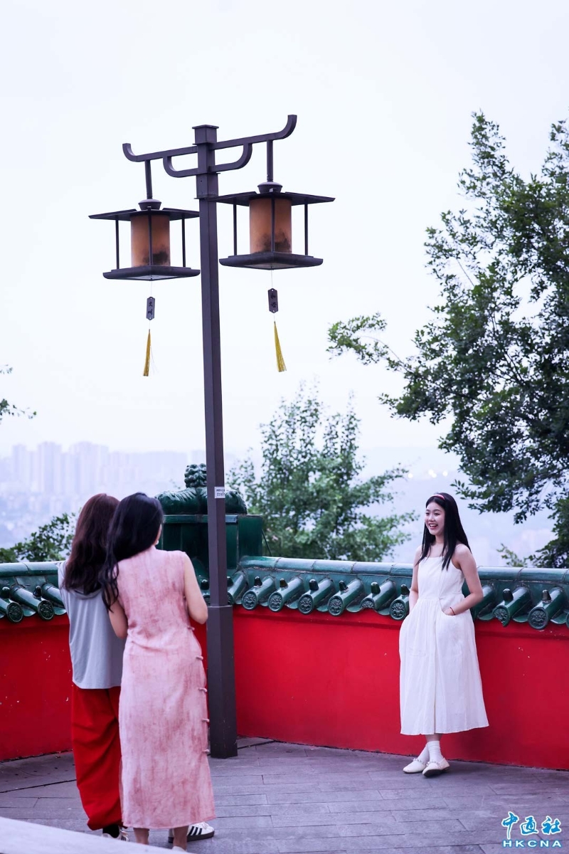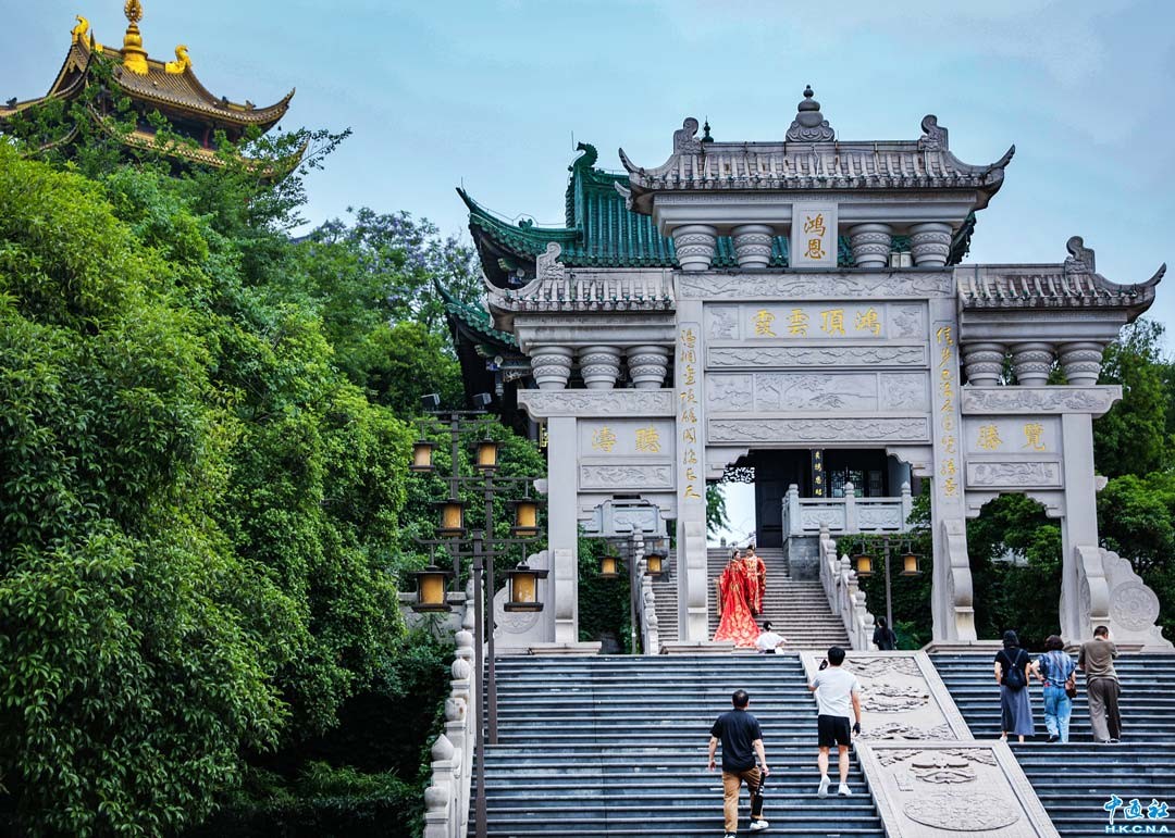 香港新聞網6月15日電 (記者 徐文峰)重慶鴻恩閣,位於江北區鴻恩寺森林公園內,海拔约468米高,靜謐又獨特,是重慶山城的夜明珠。 從遠處看,鴻恩閣就像一座從歷史中走來的神祕宮殿,矗立在山頂。這座仿古建築是由著名設計師杜順寶教授設計,融合明清西南地區樓閣特色,紅牆綠瓦、雕花迴廊、簷部挑樑、屋角起翹、脊飾吻獸,每一處都散發著古典的氣息。 鴻恩閣是重慶人登高望遠,觀景休憩的好去處。 無論是漢服愛好者來此拍攝古風大片,或是攝影達人捕捉美麗瞬間,鴻恩閣都不會讓人失望。如果你也想來一場穿越時空的旅行,欣賞絕美的山城風光,絕對不能錯過鴻恩閣!