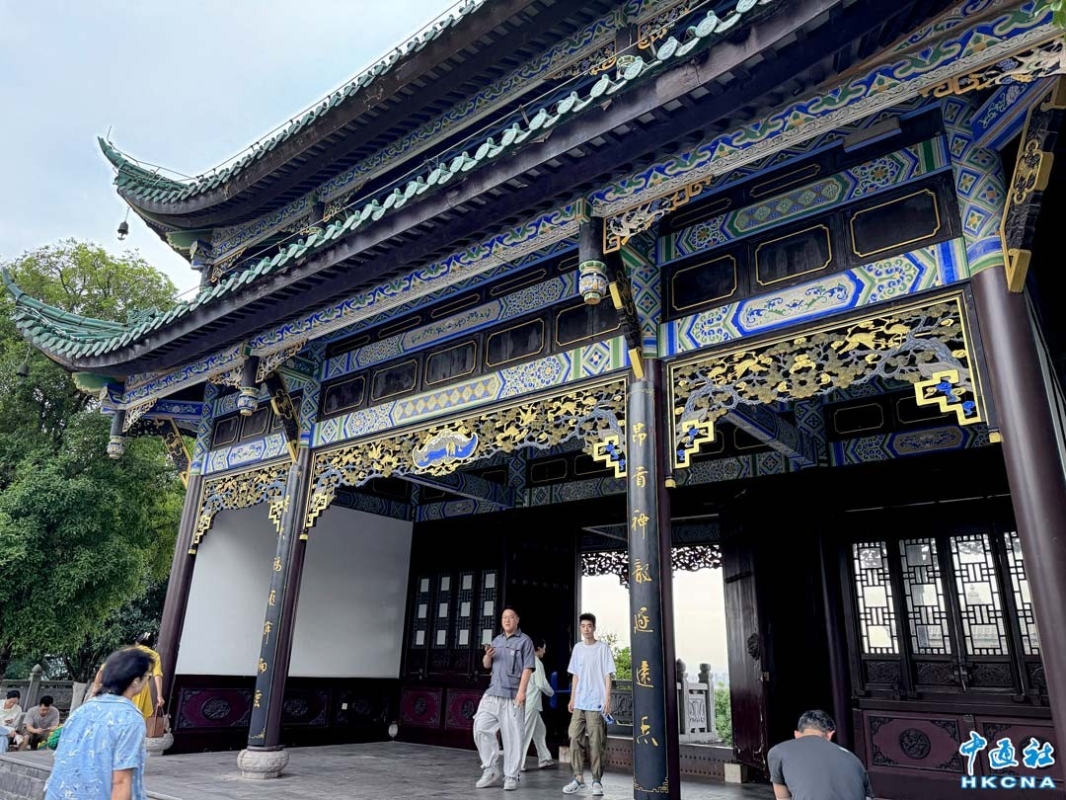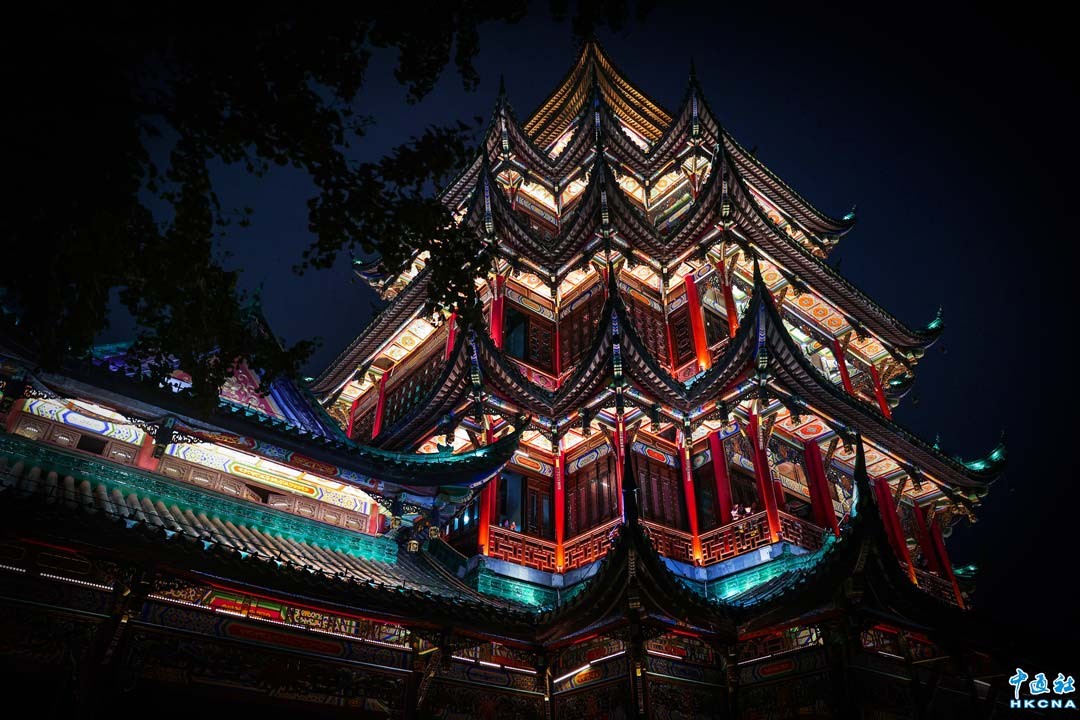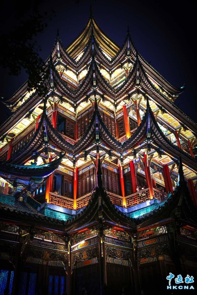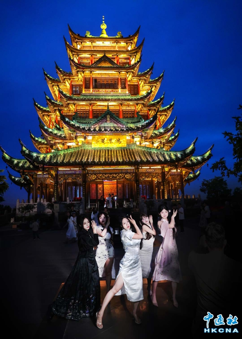 香港新聞網6月15日電 (記者 徐文峰)重慶鴻恩閣,位於江北區鴻恩寺森林公園內,海拔约468米高,靜謐又獨特,是重慶山城的夜明珠。 從遠處看,鴻恩閣就像一座從歷史中走來的神祕宮殿,矗立在山頂。這座仿古建築是由著名設計師杜順寶教授設計,融合明清西南地區樓閣特色,紅牆綠瓦、雕花迴廊、簷部挑樑、屋角起翹、脊飾吻獸,每一處都散發著古典的氣息。 鴻恩閣是重慶人登高望遠,觀景休憩的好去處。 無論是漢服愛好者來此拍攝古風大片,或是攝影達人捕捉美麗瞬間,鴻恩閣都不會讓人失望。如果你也想來一場穿越時空的旅行,欣賞絕美的山城風光,絕對不能錯過鴻恩閣!