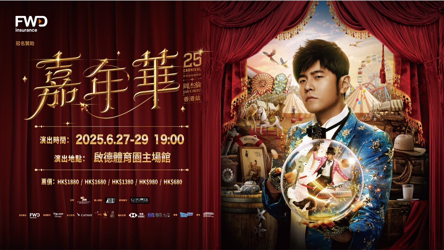 香港新聞網6月25日電 華語音樂知名歌手周杰倫將於6月27日至29日登陸啟德體育園主場館,帶來《周杰倫嘉年華世界巡迴演唱會2025–香港站》。