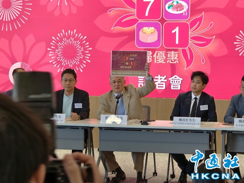 香港中通社6月25日電(記者梁嘉軒)為慶祝香港回歸28周年,飲食業界連續第三年推出“七一”慶回歸優惠活動,今年共有約3800間食肆參與。飲食業界代表25日舉行記者會,講解優惠安排詳情。