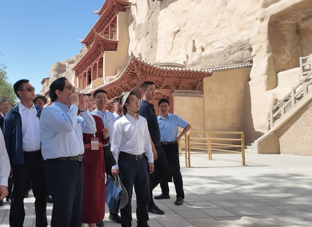 香港新聞網6月26日電(記者 周文菁 鄭竣凱)台灣當局前領導人、中國國民黨前主席馬英九率台灣青年學子第四次訪問大陸,26日在敦煌參訪莫高窟。台灣青年學生表示,參觀莫高窟令人興奮,站在壁畫前,“感覺自己拿到了通往過去的鑰匙”。 馬英九一行14日至大陸展開為期約兩周的參訪,結束首站在福建的行程後,馬英九轉往甘肅並在天水出席公祭伏羲大典,26日前往敦煌參觀莫高窟,將出席“兩岸共同弘揚中華文化活動”。