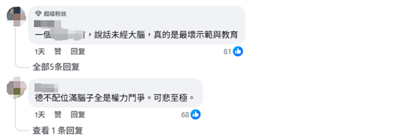 網友評論 “連小孩都受到影響了。”有網友擔憂,在這樣的政治氛圍下,台灣“如何教育下一代?”