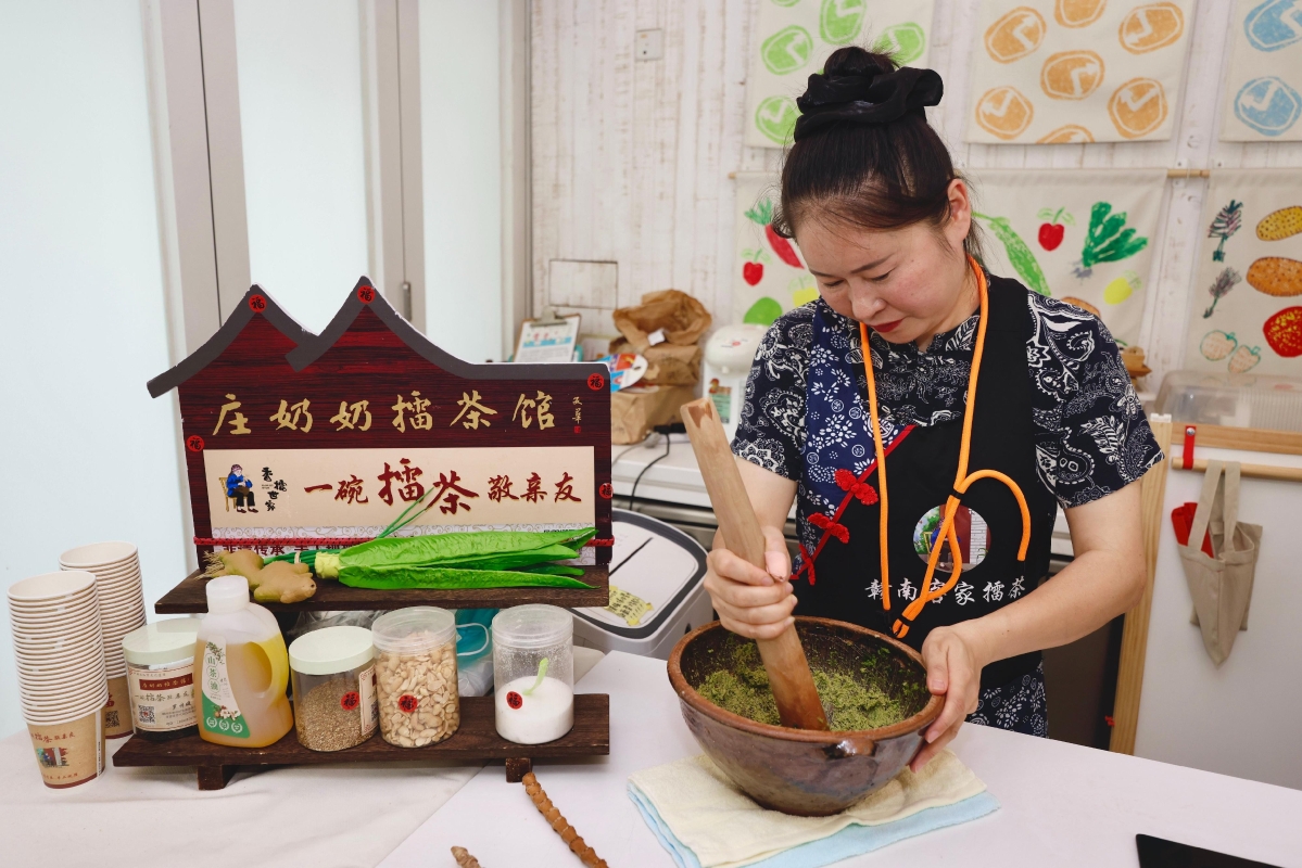 圖為江西贛南客家擂茶製作技藝示範 在油街草地舉行的客家山歌及南音表演,吸引不少市民駐足欣賞。“移動非遺”專車亦駛進油街實現,車內設有展覽及互動裝置,讓公眾通過趣味遊戲學習香港節慶相關的非遺知識。 嘉年華是“香港非遺月2025”活動之一,29日將有蕃薯餅、清明仔、吹糖和盆菜等非遺食品製作技藝示範及工作坊。(完) 【編輯:李冉】