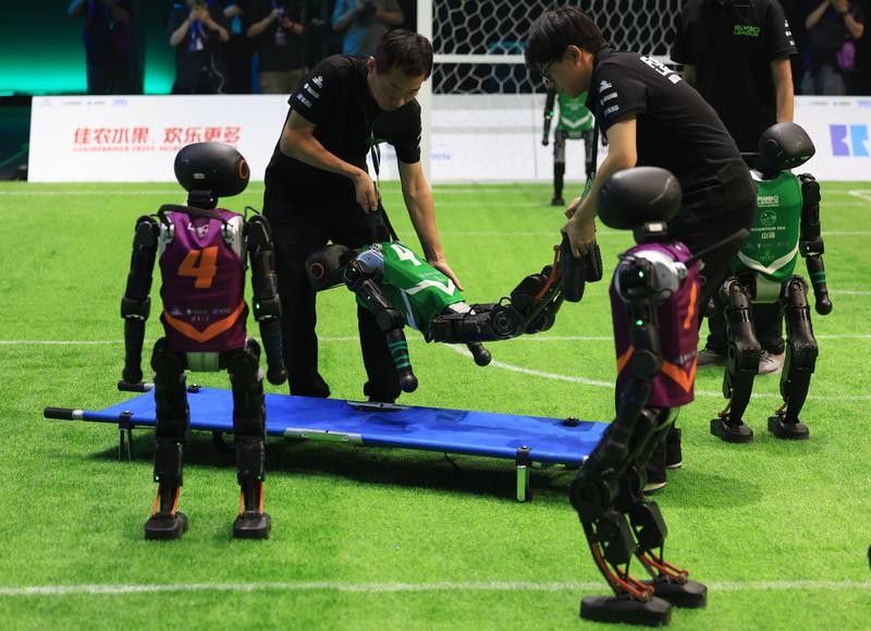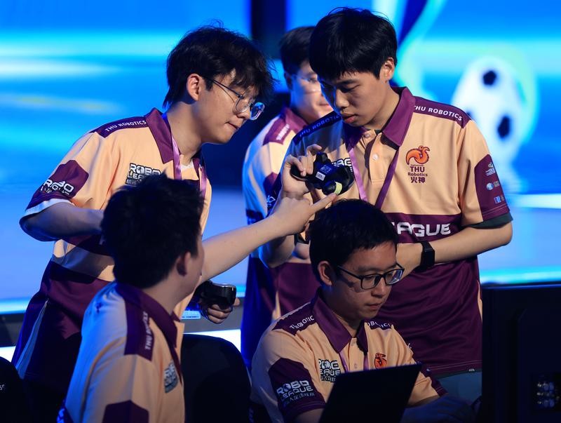 6月28日,中國農業大學山海隊的機器人選手在比賽中。新華社照片