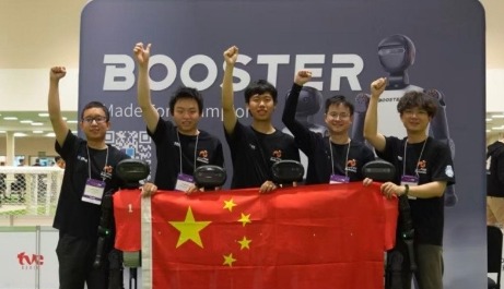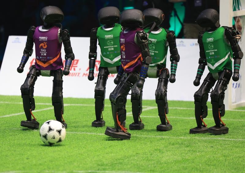 香港新聞網6月29日電 中國首場機器人足球3V3 AI賽6月28日在北京舉行,參賽機器人通過AI操控實現自主踢球。共有來自北京信息科技大學Blaze光熾隊、清華大學未來實驗室Power智能隊、清華大學火神隊、中國農業大學山海隊的四支機器人隊伍角逐綠茵場。最終,清華火神隊以5:3奪得冠軍,中國農業大學山海隊獲得亞軍,清華大學未來實驗室Power智能隊與北京信息科技大學Blaze光熾隊并列獲得季軍。