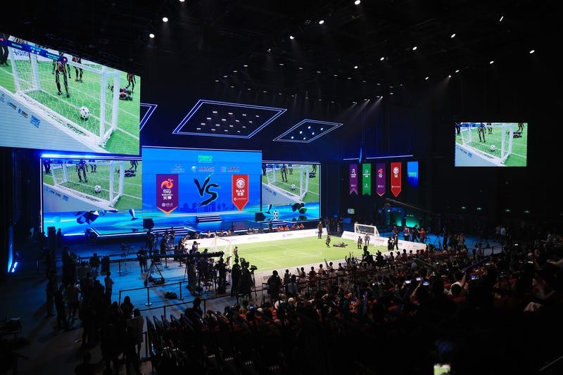 6月28日,清華火神隊與中國農業大學山海隊的機器人選手在比賽中。新華社照片