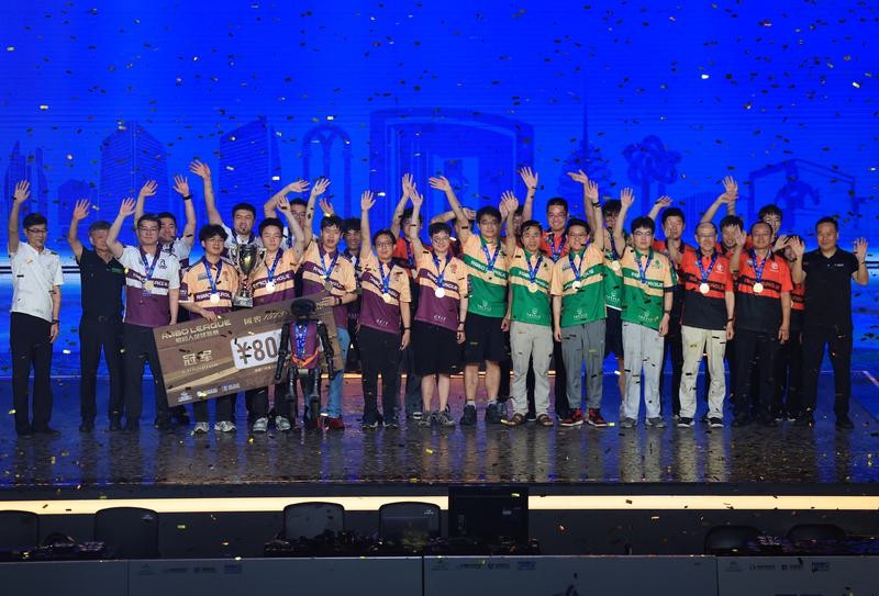 6月28日,北京信息科技大學Blaze光熾隊、清華大學未來實驗室Power智能隊、清華大學火神隊、中國農業大學山海隊在頒獎儀式中合影。新華社照片 (完) 【編輯:紀東】