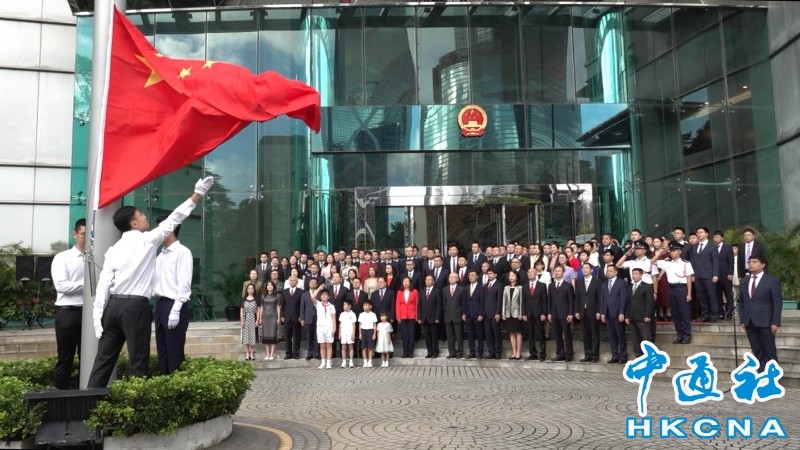 香港中通社7月1日電 7月1日,是香港回歸祖國28周年紀念日。當天清晨,香港中聯辦、駐港國家安全公署、外交部駐港特派員公署、解放軍駐港部隊等主要中央駐港機構,分別舉行了升國旗儀式。