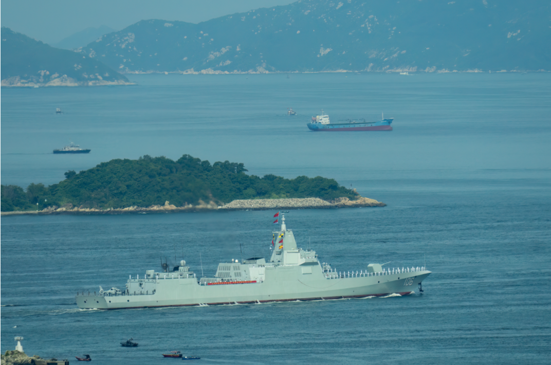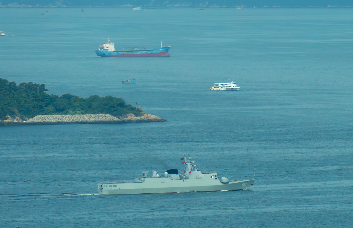 山東艦駛入香港水域。(攝影記者:蔡志東)香港中通社圖片
