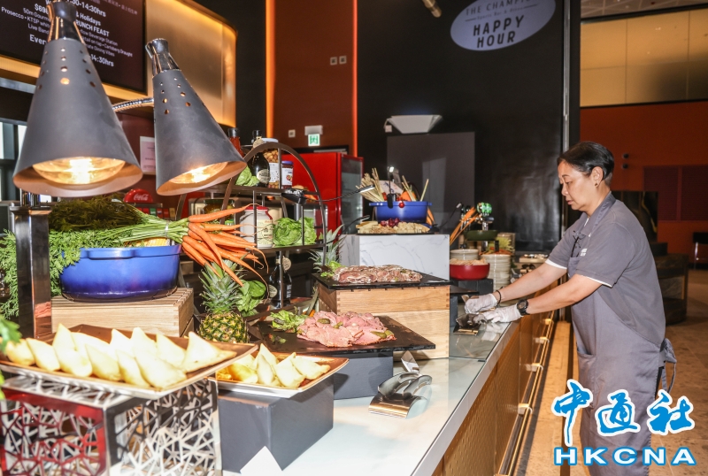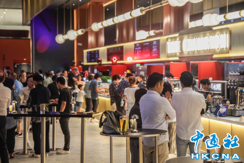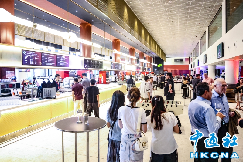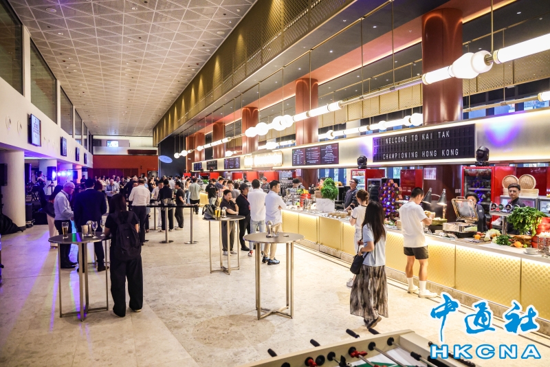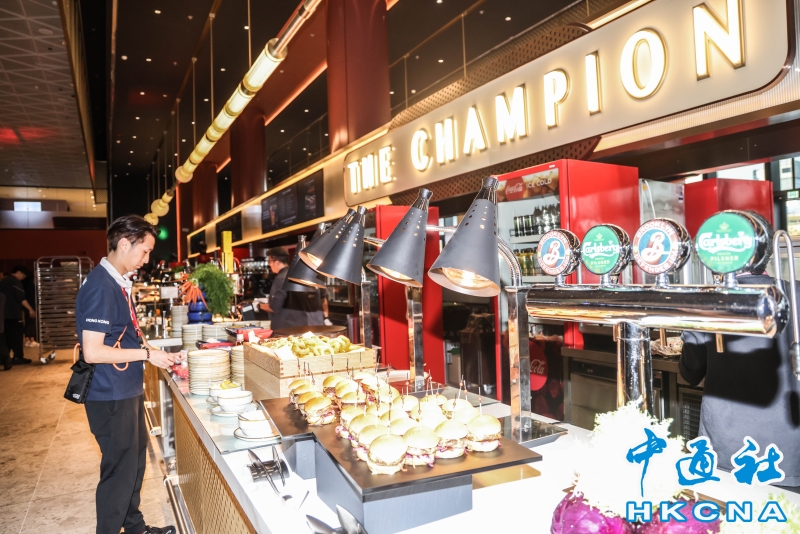 位於香港啟德主場館二樓東大廳的運動酒吧“The Champion”,將於7月5日正式開幕。“The Champion”靈感來自前啟德機場,設計以金色為主調,象徵著金牌的榮耀,配以特色條紋玻璃和舊式航班信息翻頁顯示板的裝飾。“The Champion”的運動酒吧吧枱雙面設計長約100 米,配備64個啤酒龍頭,供應9款精選啤酒和2款招牌特色雞尾酒;酒吧配備12個全天候控溫啤酒庫存,最多可儲存1800桶共約54000公升啤酒;同時提供多種娛樂設施,包括8條電子飛鏢賽道、2張美式桌球枱及2張桌上足球機,7月底將新增2部一級方程式模擬駕駛器,為賽車迷帶來沉浸式體驗。(香港中通社記者 曹文毓攝) 香港中通社圖片