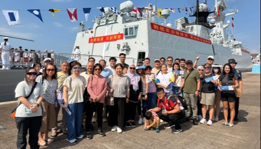 7月7日,中國人民解放軍海軍山東艦航母編隊離開香港,結束為期5天的訪港行程。圖為大批市民到海怡半島海濱送別山東艦。(香港中通社記者 許其皓攝) 香港中通社圖片 特區政府早上10時舉行歡送儀式,香港市民和青少年學生代表在昂船洲軍營碼頭,歡送湛江艦和運城艦艦。繁忙的維多利亞港,山東艦、延安艦相繼起錨,桅杆上升起旗語為“感謝大家關懷”“為人民服務”的信號旗。 記者在香港南邊的海怡半島,看到大批市民早早等候歡送“國之重器”。 “我們不會再被別人欺負了!”7日上午,揮著中國國旗在香港島南邊海濱為山東艦航母編隊送行的林太太說。 林太太和先生橫跨半個香港,揮舞的國旗與蔚藍的大海遙遙呼應。“我覺得帶著國旗,艦上的士兵看到,他們應該會很開心。”林太太興奮表示:“這一次山東艦編隊訪港,是香港人的榮幸”。 縱然當日烈日當空,但難掩市民的熱情。來自上海的旅客張先生說:“之前只是遠眺過,沒有這麼近。”他在山東艦進入維港的時候已經觀賞過一次,但這次停靠戰機一側正對海岸,讓他更為激動。而他此次訪港的目的正是為了一睹山東艦航母編隊的風採。 香港市民陳先生表示,他對國防軍事十分感興趣,“軍艦每次都會看”,但因工作錯過了進港,因此這兩天在香港不同的地方,嘗試欣賞山東艦的英姿。 在數碼港海濱花園,記者看到不少媒體和市民扛著專業器材,在海邊遠遠歡送山東艦。有小朋友戴著印有艦隊編號的帽子,非常雀躍地拿著望遠鏡連呼“哇哇哇”。 山東艦是中國第一艘完全自主設計、自主建造、自主配套的航空母艦,2019年12月正式入列。此次編隊首次開放參觀來到香港,共有超過3萬名香港市民、青少年學生及各界愛國人士登上大國重器與海軍官兵親切互動交流。 連日來,市民遊客在全港各地,以爬山、遊船、乘車過青馬大橋等方式,全城追艦。(完) 【編輯:梁嘉軒】
