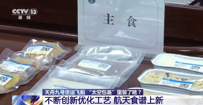 7月15日在北京航天飛行控制中心拍攝的天舟九號貨運飛船與空間站組合體進行交會對接的模擬圖像。 圖片來源:新華社 天舟系列貨運飛船由中國航天科技集團五院抓總研製,是世界現役貨物運輸能力最大、在軌支持能力最全面的貨運飛船。此次發射的天舟九號飛船承擔著為神舟二十號和神舟二十一號乘組運送物資的任務。 天舟九號貨運飛船此次上行的物資重量約為6.5噸,再創空間站應用與發展階段貨運飛船上行物資裝載重量新高。 據中國航天員科研訓練中心介紹,在這次運送的物資中,航天食品就超過1.5噸,種類多達190餘種,其中副食品類增加了20多種,總數達到90多種。新增的菜品裡包括有:麻婆豆腐、番茄雞蛋、清燉馬蹄、素三鮮、小炒蓮藕、外婆菜、孜然土豆等,讓航天員在太空就能吃到家鄉味兒。 這些看似普通的家常菜背後,凝聚了地面科技人員的大量研究和攻關。中國航天員科研訓練中心劉微說,“比如麻婆豆腐這個產品,我們平時在家裡烹飪的時候都要小心翻炒,因為很容易破壞它的形狀和質構。但是這次通過技術攻關和工藝改進,我們成功地將麻婆豆腐送上了航天員的太空餐桌。” 據介紹,經過多年的研發,中國航天食品已經從最初的一口式、牙膏式食品,發展到如今的主食、副食、即食、調味品,甚至新鮮蔬菜一應俱全,實現了“三食四品”的突破。