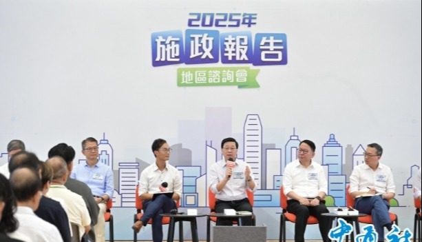香港中通社7月27日電 香港特區行政長官李家超27日率領21名司局長出席2025年《施政報告》地區諮詢會,聽取地區人士對本屆特區政府第四份《施政報告》的意見和建議。諮詢會在香港九龍一間小學舉行,約有120位來自不同背景的市民出席。 地區諮詢會歷時兩小時,分兩部分進行。第一部分由行政長官和司局長聽取市民發表意見,涵蓋議題廣泛,包括土地房屋、交通運輸、創新科技、金融發展、文化體育、教育、青年、扶貧助弱、醫療服務和社會福利等。第二部分是小組討論,出席市民獲分為四組,分別圍繞“拼經濟謀發展”和“惠民生建未來”兩個主題,與行政長官及司局長進行深入交流。行政長官輪流與每個小組的市民交流和討論,聽取意見。