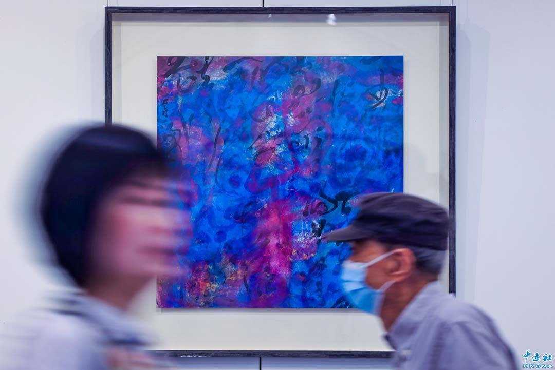 7月25日,由中國文學藝術界聯合會香港會員總會主辦、中國美術家協會香港會員分會協辦的《書寫的力量》展覽在香港中央圖書館舉行開幕典禮。展覽旨在體現中國書寫藝術在香港的最新發展,透過藝術家們“以書入畫”、“書畫融合”的創意創作,展現中華傳統書畫的筆墨、線條、章法、韻律、構圖、空間留白等技巧,並對傳統及當代書法藝術作出深入解構與反思。圖為嘉賓參觀展覽。(香港中通社記者 謝光磊攝)