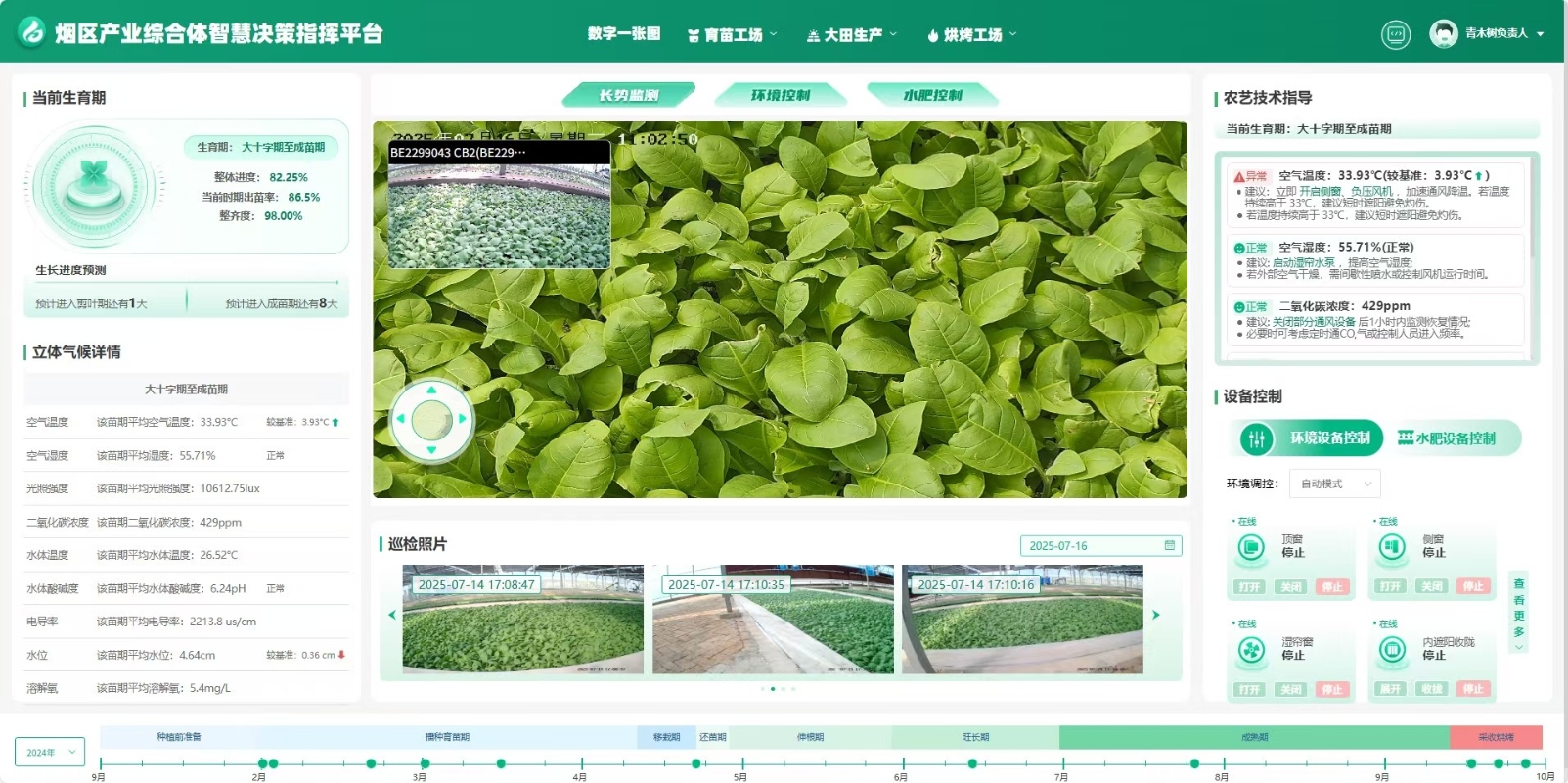 中國煙草“新員工”配備了專用攝像頭和農業傳感器 用機器人取代高強度、危險和重複性勞動 “你看,機器狗監測到目前這片苗木處在‘大十字期至成苗期’,出苗率86.5%,整齊度98%,并且對於當下的空氣溫度、濕度、光照強度、二氧化碳濃度、水體溫度、水體酸碱度和水位等指標都有實時的監測,進而根據監測提供農藝技術指導。” 宇樹相關負責人介紹,“這張圖就可以看出來,因為空氣溫度過高,這位‘新員工’及時報警了。它建議我們立即開啟側窗和負壓風機加速通風,如果溫度持續高於33℃,就需要進行短時間的遮陽,避免灼傷。根據這些監測,它還可以自動控制植物所在環境的頂窗、側窗和濕簾窗等,智能又省心,幫助煙農減輕田間的勞作。” 與依賴人類經驗來評估作物狀況的傳統方法相比,由人工智能視覺和邊緣計算驅動的機器人系統,正逐漸成為提高農業管理效率和準確性的新工具。據介紹,這位“新員工”配備了一台專用攝像頭和農業傳感器,以實時監測幼苗的生長狀況。它的“大腦”裡還集成了為特定場景開發的定製AI視覺模型,因此可以由邊緣計算驅動,實時分析和自動識別苗木狀態,并將數據傳輸到集中控制平台。基於收集到的農業大數據,生成適合當前生長階段的,有針對性的種植策略。