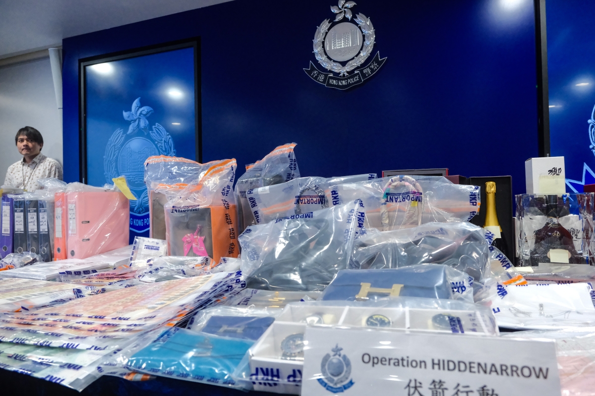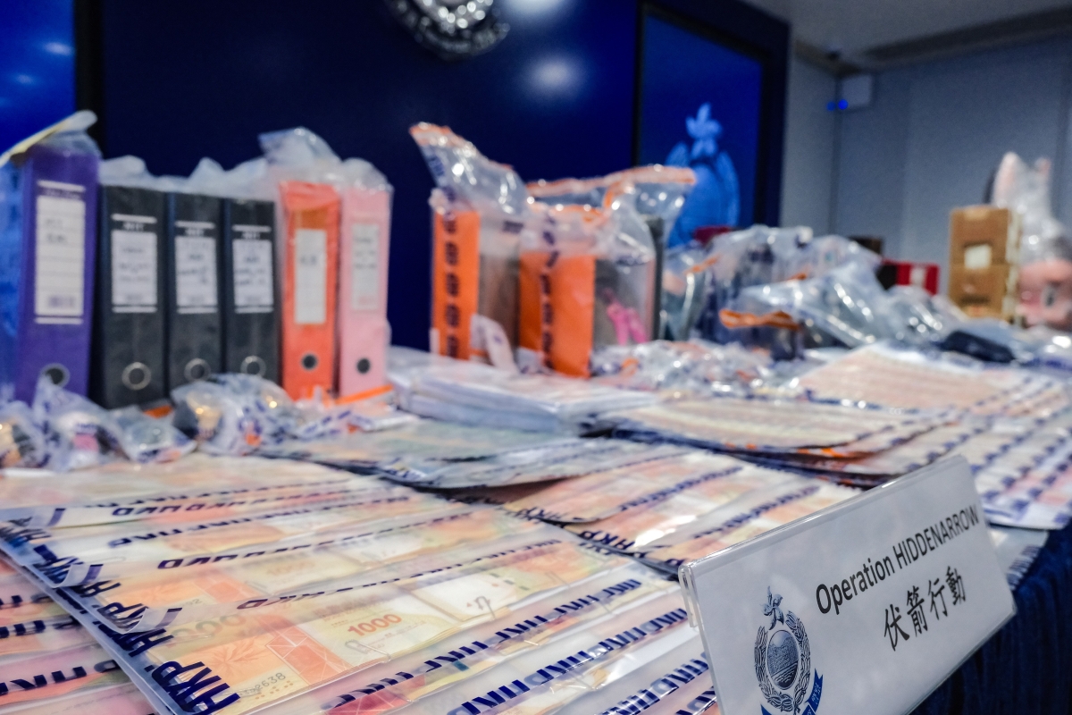 “伏箭”執法行動中檢獲約共港幣幣826萬現金以及價值超過港幣700萬元的證物。