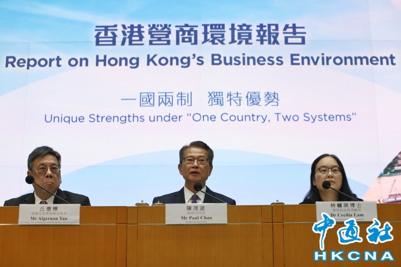 圖為香港特區政府財政司司長陳茂波(中)主持記者會。 香港中通社圖片 報告整合了政策優勢、人才到港宗數、境外企業落戶量等多方面的數據,協助境外人士及投資者更清晰地掌握香港的情況。 財政司司長引述市場數據指出,恆生指數較去年上升18%後,今年以來已再上升27%。上半年每日成交額上升120%,截至今年7月中,港股有52宗IPO,集資額近1300億港元,按年上升約6倍。 此外,截至6月底,所有人才入境計劃合共收到近50萬宗申請,當中近33萬宗獲批,近22萬人已經到港。 而人才流入與全球優秀企業落戶香港有著相輔相成的作用。自2023年1月至2025年上半年,投資推廣署協助超過1300家內地和海外企業在香港開設和擴展業務,這些企業帶來超過1600億港元外來直接投資。 同時,引進重點企業辦公室於2022年12月成立,至今共引進84間重點企業來港開設或拓展業務,當中不少是市值或估值過百億港元的創新科技企業,擁有行內前沿技術。 報告同時指出,引進辦引入或協助擴展在港運營規模的企業,在未來數年將合共為香港帶來約500億港元的投資,同時創造逾2萬個職位。 陳茂波說,香港第二季的經濟增長數字將於當日的下一個工作日發佈,香港第一季的經濟增長為3.1%,他在回應記者提問時預告,第二季的數據將維持上述勢頭。 就商廈供需的平衡上,陳茂波表示,當香港一直發展經濟,一直招商引資的時候,越來越多企業進駐香港,自然能消化香港的辦公房及存量房。 他以引進辦的數據為例,他們所引進的企業已使用168萬平方呎的地方。他同時指出,特區政府會配合商業用地的轉型,並舉例有大學購入大廈用作宿舍,指出從供應和需求上,雙管齊下,處理辦公房。 陳茂波形容,這些數字在當前複雜多變的地緣政治環境下是重要的,能讓世界各地的商界朋友和投資者更深入地了解香港在不同領域的實況和機遇。(完) 【編輯:彭玉婷】
