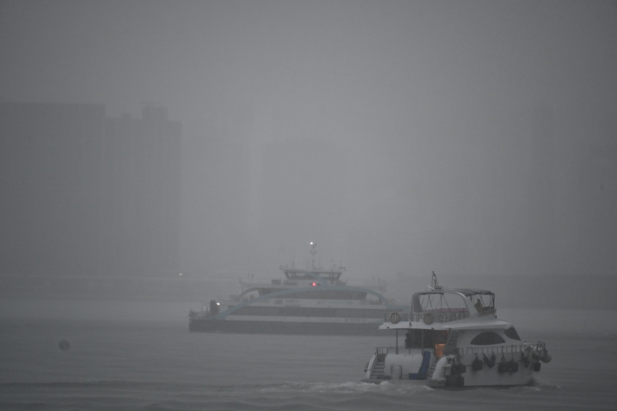 海面能見度低,維港一片霧色茫茫