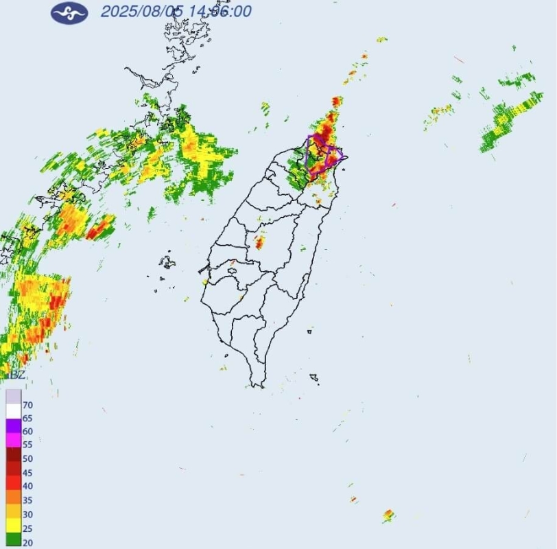 香港新聞網8月5日電 台灣“氣象署”已針對大台北及基隆市發布即時大雷雨訊息。台灣氣象局前局長鄭明典表示,午後正南風在北台灣輻合,導致台北盆地出現強烈午後對流現象。台灣民間氣象公司“天氣風險”亦發出警告,指出今日下午觀測到每分鐘高達440次的閃電。