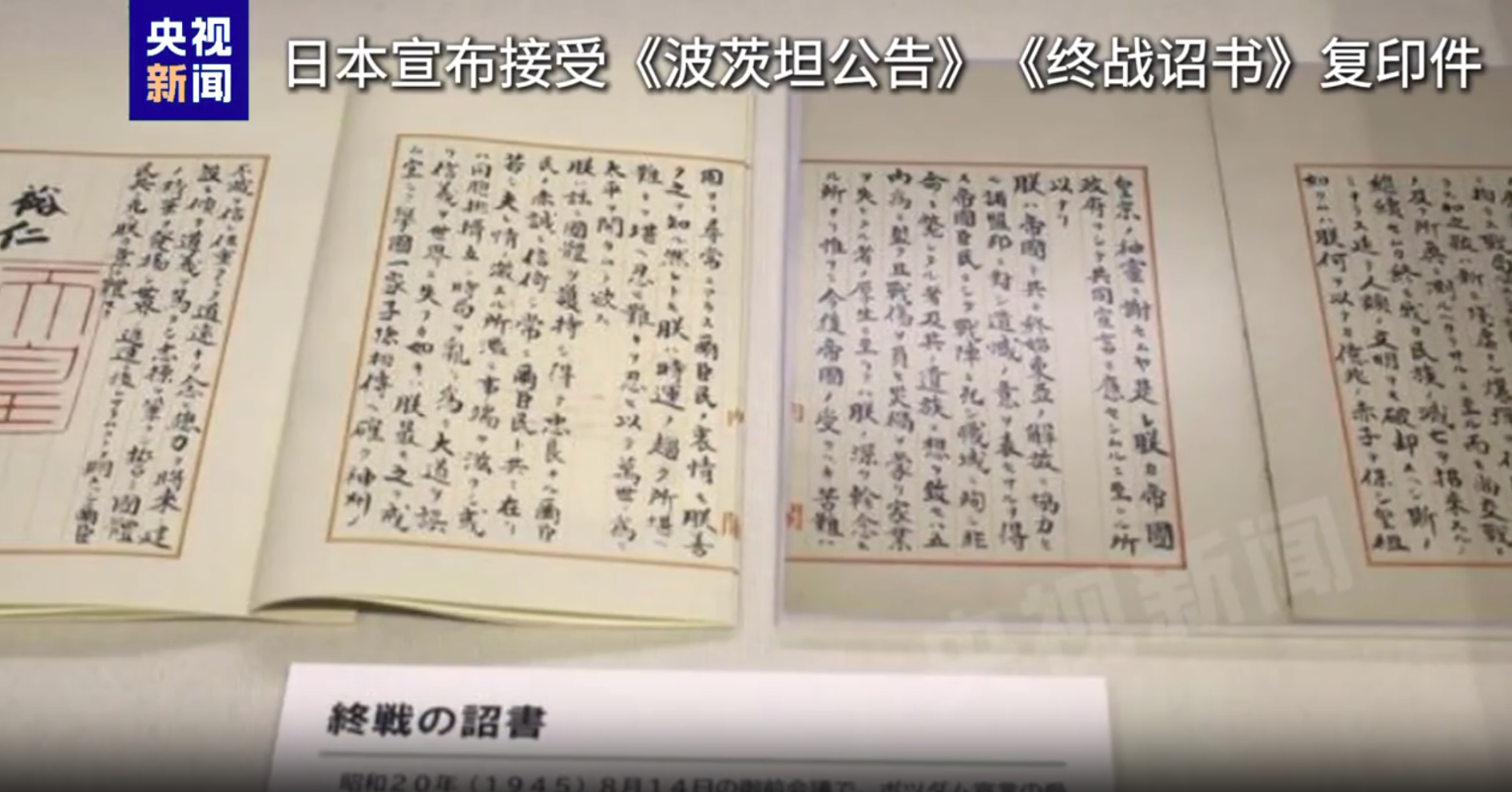 央視新聞圖片 其間,8月8日至21日將展出日本宣布接受《波茨坦公告》的《終戰詔書》原件。詔書內容在1945年8月15日通過昭和天皇廣播的形式告知日本國民。 1945年9月2日,泊於東京灣的美國戰艦密蘇里號上,在包括中國在內的9個受降國代表注視下,日本在投降書上簽字。 《波茨坦公告》與1943年12月1日公布的《開羅宣言》等國際法文件一起,確立了處理戰後日本問題的基本方針和原則,是世界反法西斯戰爭正義事業的重要成果和構建戰後亞太國際秩序的法律基石。 中國外交部發言人此前表示,今年是台灣光復80周年,日方在台灣問題上負有不可推卸的歷史罪責。1943年中美英發表《開羅宣言》,明確規定要把日本竊取的台灣歸還中國。1945年中美英蘇發表《波茨坦公告》,第八條規定《開羅宣言》之條款必將實施。1945年8月15日日本宣布接受《波茨坦公告》,無條件投降。日方此後又在1972年《中日聯合聲明》中承諾遵循《波茨坦公告》第八條的立場。1978年《中日和平友好條約》寫明“聯合聲明所表明的各項原則應予嚴格遵守”,條約經中日兩國立法機構審議通過,連同《中日聯合聲明》一體,構成具有法律約束力的兩國關係指導文件。 “這些歷史經緯和法理依據充分表明,恪守一個中國原則是日方必須履行的嚴肅政治承諾和國際法義務。”發言人指出,敦促日方重信守諾,審慎處理台灣問題,以實際行動維護中日關係改善發展勢頭。(完) 【編輯:林曉惠】