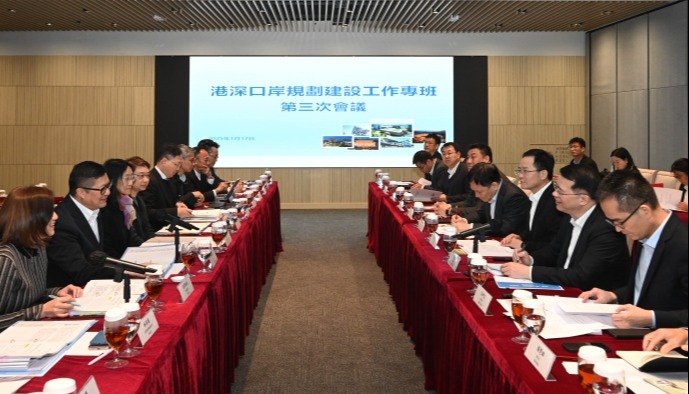 今日在深圳舉行“港深口岸規劃建設工作專班”第四次會議。圖源:香港特區政府新聞處 考察期間,鄧炳強視察正在興建的新皇崗口岸聯檢大樓,指該大樓已甚具規模,充分展現港深兩地緊密合作的成果。