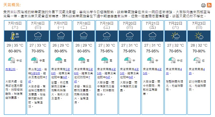 (香港中通社記者 許其皓攝) 香港中通社圖片 今早(17日)近8時,位於南海中北部的熱帶低氣壓集結在香港之西南偏南約640公里,即在北緯17.1度,東經111.5度附近,預料向西北移動,時速約18公里,大致移向海南島一帶。 天文台表示,按照現時預測,該熱帶低氣壓會在今早與香港保持約600公里或以上距離,一號戒備信號會至少維持至正午12時。受熱帶低氣壓與中國東南部的高壓脊共同影響,香港離岸及高地間中吹強風。隨著該熱帶低氣壓移向海南島一帶,香港風力會在今日稍後有所增強。天文台會視乎該熱帶低氣壓與香港的距離及本地風力變化,評估是否需要在今日正午12時至下午6時改發三號強風信號。 與熱帶低氣壓相關的雨帶會在今日影響廣東沿岸地區。預料香港今日間中有狂風驟雨及雷暴,雨勢有時較大,海有大浪及湧浪,市民請遠離岸邊及停止水上活動。 天文台今早5時30分發出特別天氣提示,預料強陣風繼續吹襲香港。如身處室外,請盡快到安全地方躲避。 澳門氣象局考慮在上午8時至11時,改發三號風球。氣象局表示,預料位於南海中部的熱帶低氣壓以西北偏北方向移動,大致趨向海南島至廣東西部沿岸。在高壓脊共同影響下,預測澳門今日風力將會增強達6級,會在早上8時至11時考慮改發三號風球。當局提醒巿民留意最新天氣資訊,適時做好防風及防水浸措施。 內地氣象部門預測,位於南海中北部的熱帶低氣壓,可能在星期日晚間至星期一上午,在海南島東南部至廣東西部沿海登陸。 當局預測星期日至星期三,廣東省中南部市縣,會有大雨到暴雨、局部地區有大暴雨。 廣東省防汛防旱防風總指揮部辦公室,要求各地各部門做好防禦工作。 當局表示,今天中午前,會在陽江以西海域落實防颱風措施,指示所有海上作業漁船回港避風、所有漁排養殖和海洋牧場人員上岸避險、海上風電施工平台人員全部撤離,休閒船艇和鄉鎮船艇等禁止出海,濱海旅遊景區以及跨海航線亦要根據情況適時關停。 綜合香港電台、香港點新聞報道 【編輯:紀東】