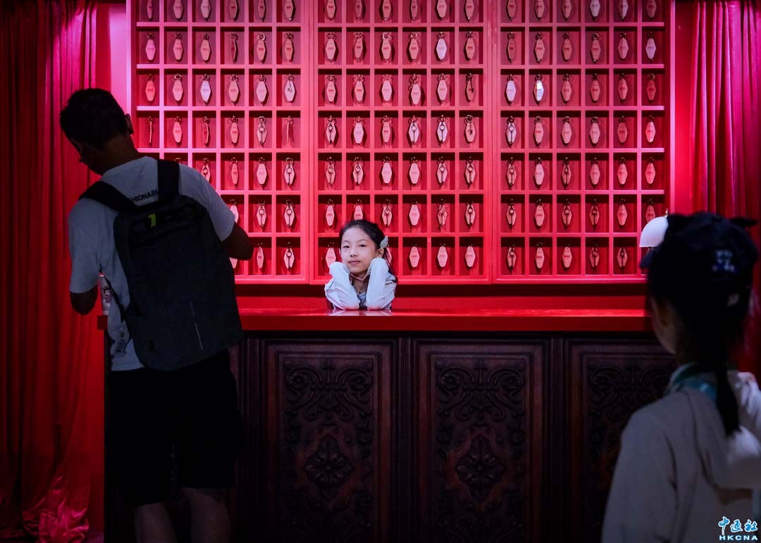 風靡全球的視覺企劃《ACCIDENTALLY WES ANDERSON》(簡稱“AWA”)先後於首爾、倫敦、東京、墨爾本、洛杉磯等城市成功巡展,累計超過100萬觀展人次,“WES ANDERSON 世界美學展覽”7月15日起,在香港荃灣南豐紗廠舉行。展覽展出“AWA”逾百幅來自世界各地、充滿導演韋斯·安德森風格的實景攝影,邀請觀眾乘勢走進導演鏡頭下對稱構圖與復古奇想交織的世界。圖為8月12日大批公眾到場觀展打卡。(香港中通社記者 許其皓攝)