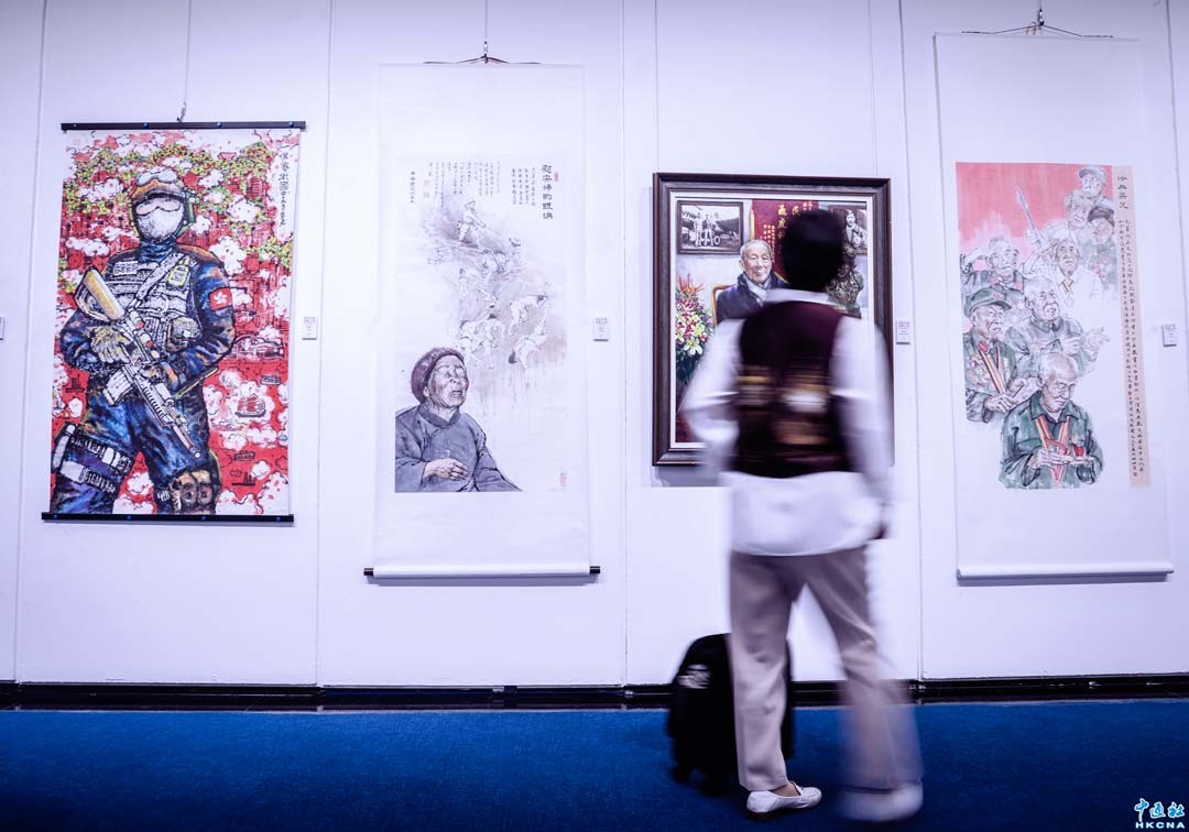 8月13日,“烽火記憶,筆墨山河——香港各界紀念抗日戰爭勝利80周年大型圖片及書畫作品展”在香港大會堂開幕,展期至18日。(香港中通社記者 曹文毓攝)