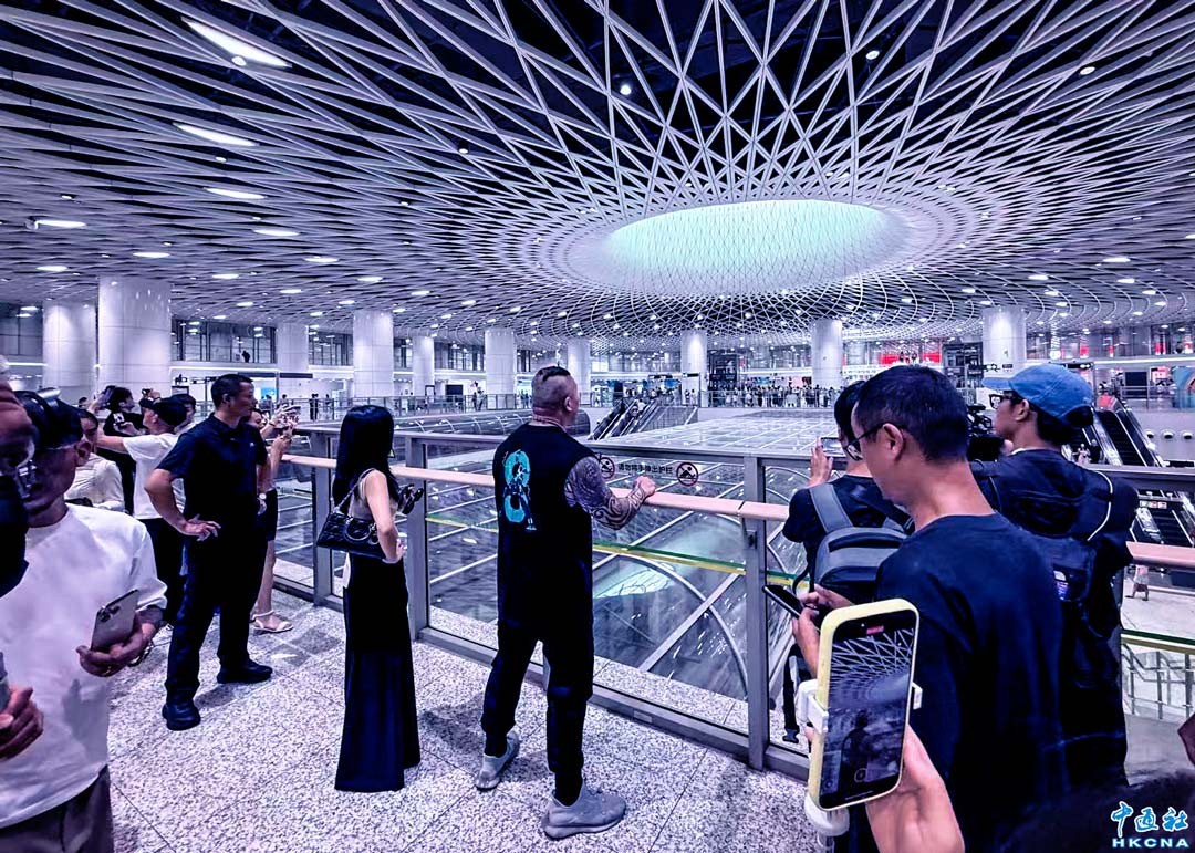 8月16日,台灣網紅“館長”深圳行第四日,參觀崗廈北地鐵站“深圳之眼”。 香港中通社圖片