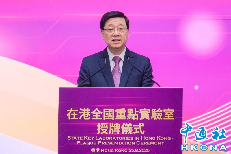8月25日,在港全國重點實驗室授牌儀式在香港政府總部舉行。圖為香港特區行政長官李家超致辭。(香港中通社記者 許其皓攝) 香港中通社圖片 香港五所高校共15所實驗室獲得國家科技部批准成為全國重點實驗室,並於今年7月1日起正式運作。 李家超說,這次獲得國家科技部授牌的15所在港的全國重點實驗室,都來自全球百強大學,彰顯香港的科研實力。香港擁有“背靠祖國、聯通世界”的獨特優勢,在香港的全國重點實驗室將提供重要平台,促進與海內外的頂尖大學和科研機構合作,匯聚全球各地的優秀科研人才,助力打造香港成為國際高端人才集聚高地。 香港積極與粵港澳大灣區城市優勢互補,李家超指出,在世界知識產權組織的《全球創新指數》百強科技集群中,“深圳—香港—廣州”集群連續五年蟬聯全球第二位,彰顯大灣區在全球創科的領先地位。深圳、香港和廣州過去一年在科技建設和應用方面都做了大量的工作,今年的排名將於下星期一在香港發表,他熱切期待結果。(完) 【編輯:石歡歡】