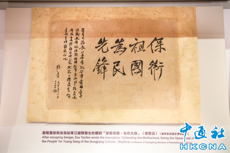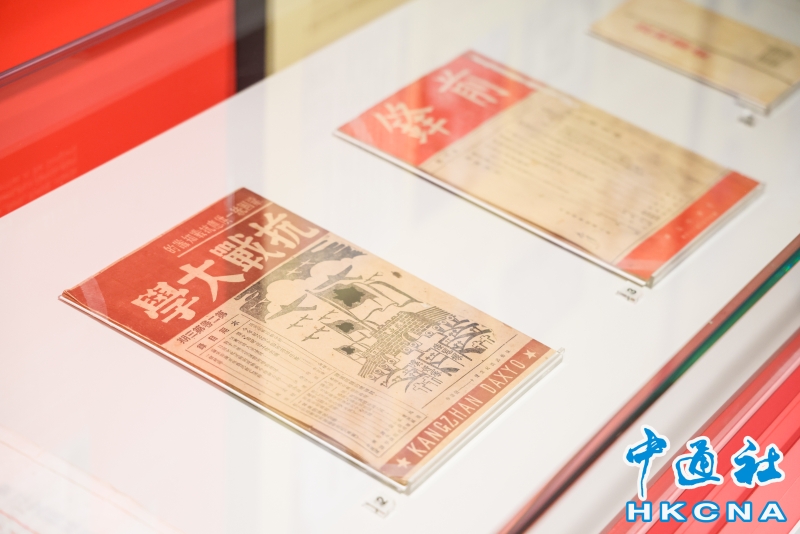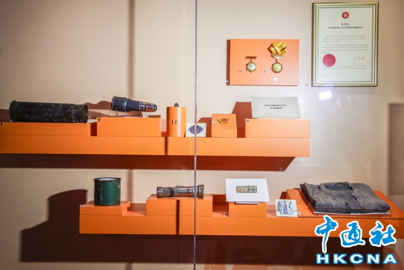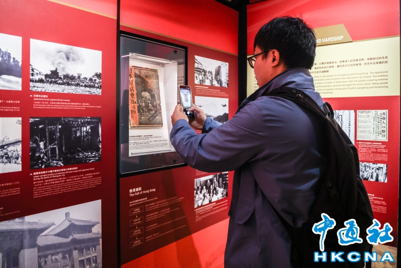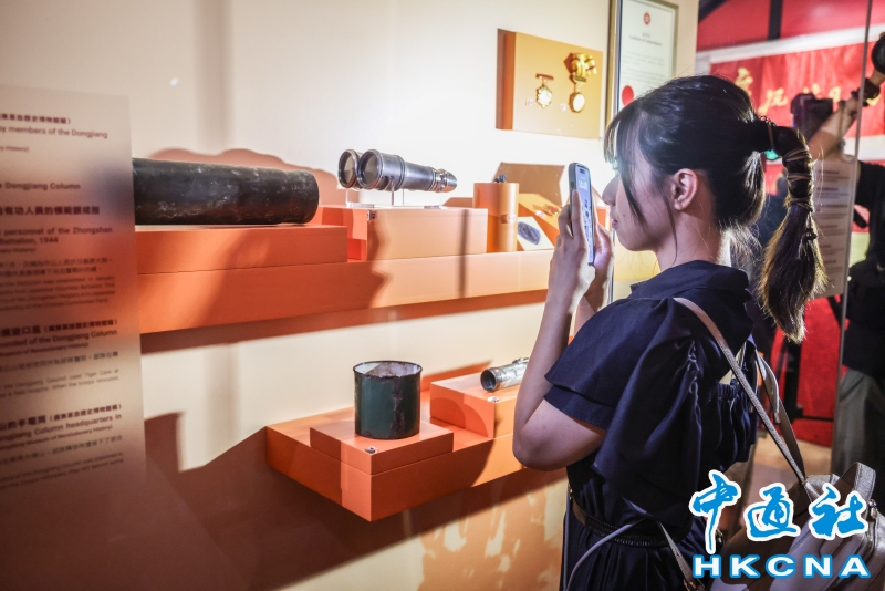 為紀念中國人民抗日戰爭暨世界反法西斯戰爭勝利八十周年,香港抗戰及海防博物館與廣東革命歷史博物館合作,推出“風雨同舟 共建和平一一粵港人民抗戰勝利八十周年展”。展覽由8月29日起至明年7月8日舉行。展覽聚焦面對外敵入侵時,粵港兩地人民在中國共產黨的領導下,血脈相連、團結一心、共同抗敵的歷史。展覽展出約40件/ 套抗戰文物,以及約一百五十幀歷史照片,包括東江縱隊成員曾使用的物品、抗戰先烈及記錄廣州和香港淪陷期間的照片等。(香港中通社記者 曹文毓攝) 香港中通社圖片
